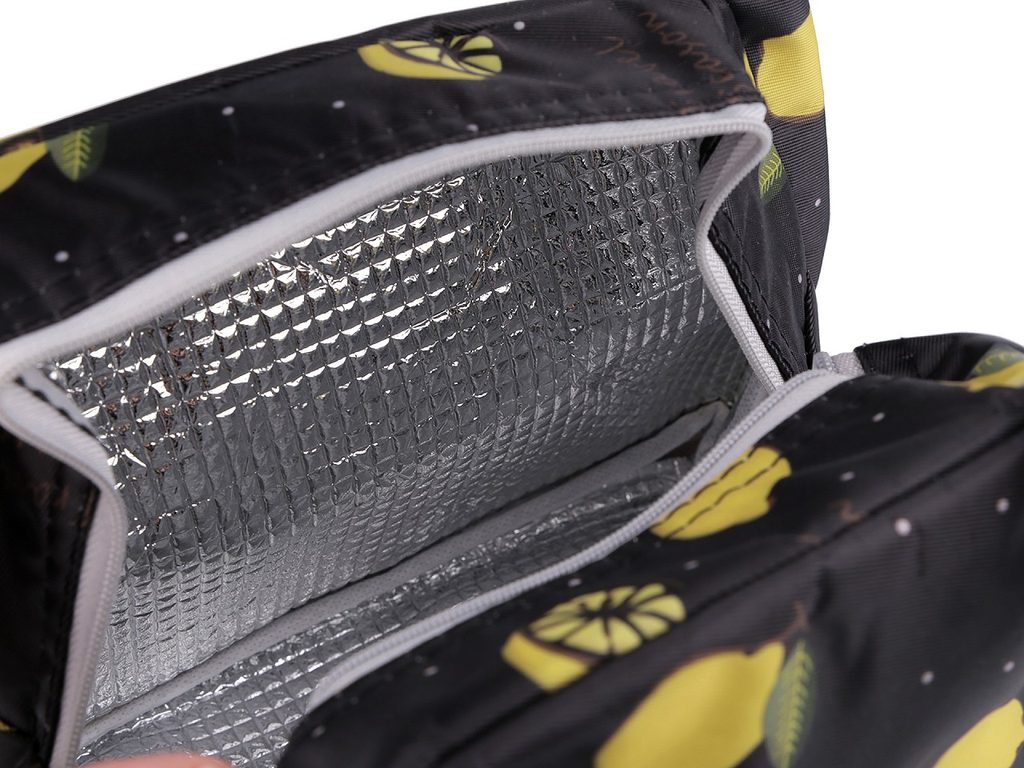 Designová termotaška je skvělým společníkem na výlety, do školy i do práce. Uchovává potraviny po určitou dobu při stejné teplotě. V hlavním úložném prostoru je izolační vrstva, která je omyvatelná. Díky širokému dnu má dobrou stabilitu. Zapíná se na zip, nahoře má ucha na pohodlné přenášení.
