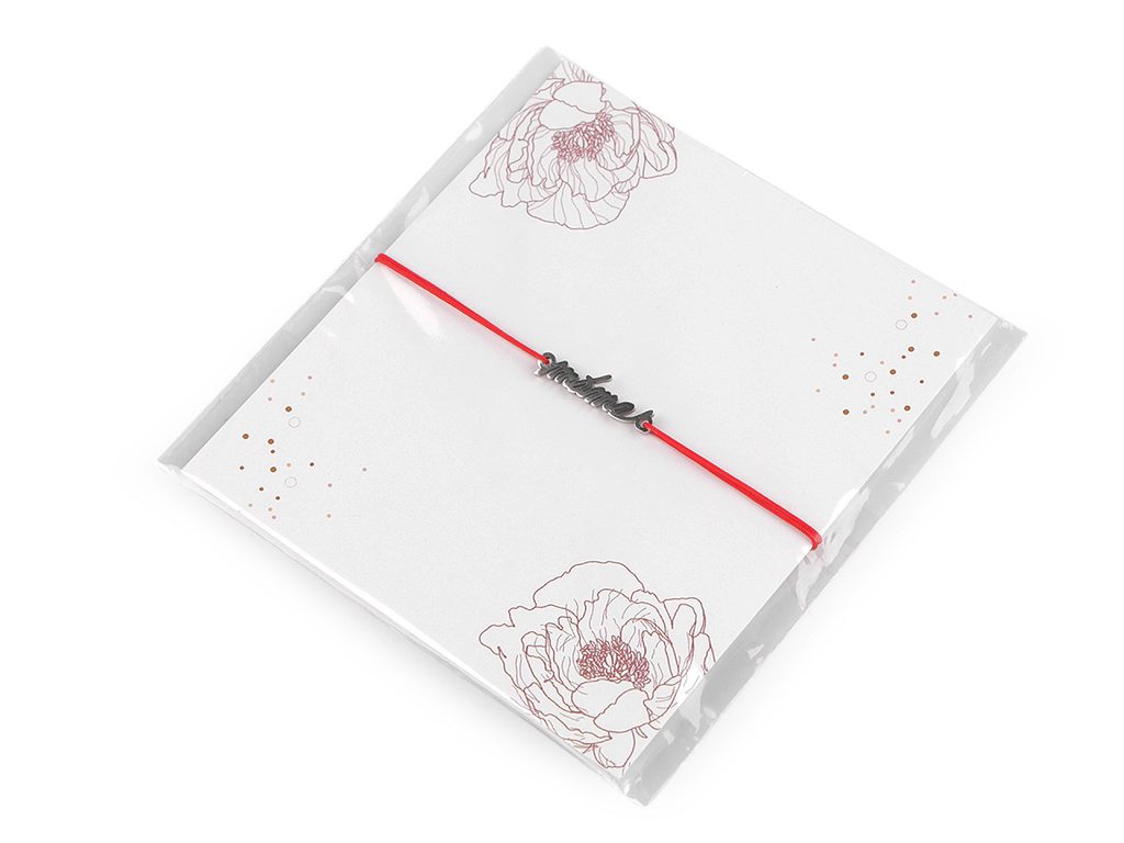 Náramek je zabalený na ozdobné kartičce v transparentním sáčku.