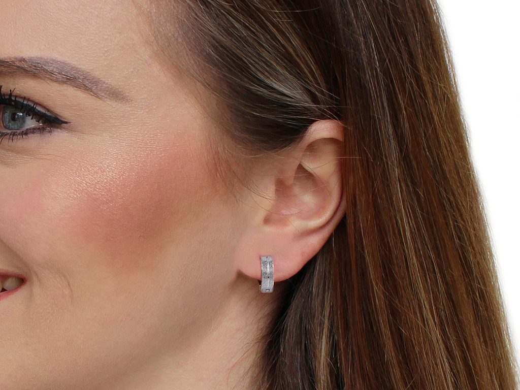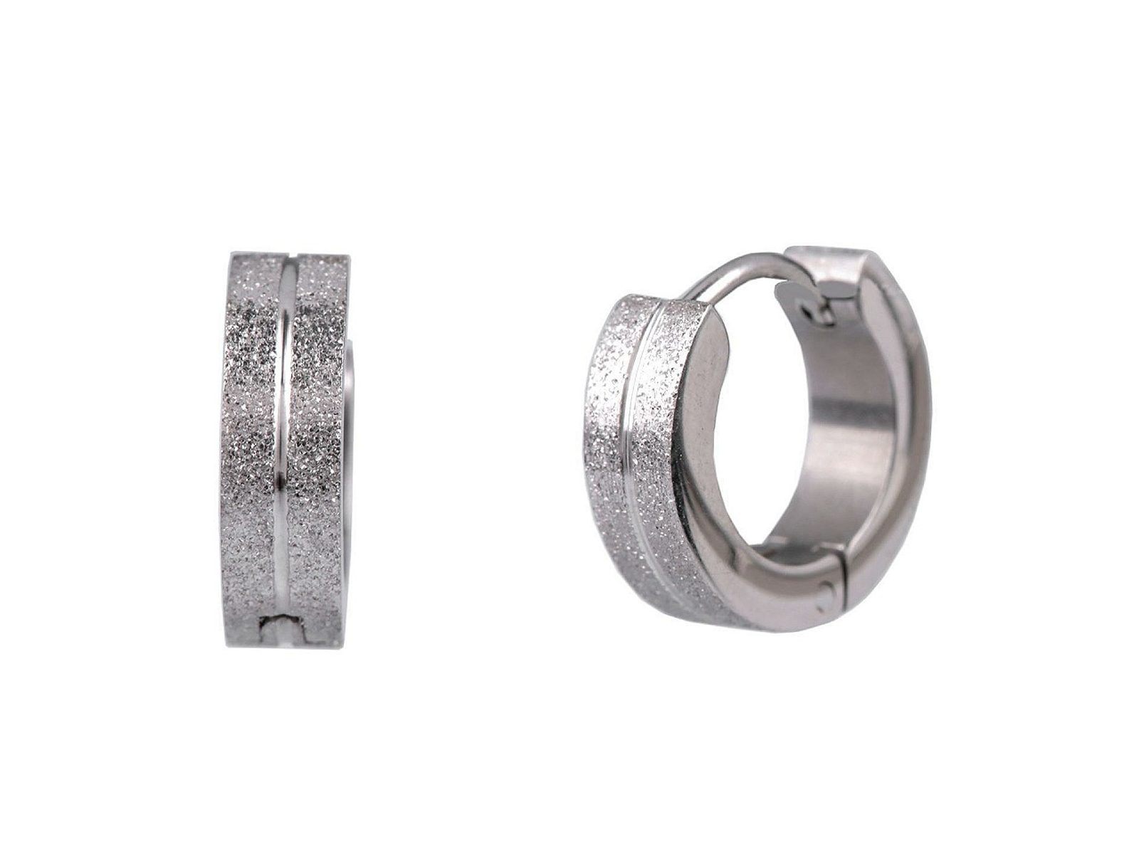 Náušnice kroužky z kvalitní nerezové oceli vkusně doplní jakýkoliv outfit, hodí se ke každodennímu nošení. Skvěle doplní byznys styl oblékání, jeansovou módu i ležérní outfity. Působí velice decentním dojmem, jsou ozdobené pískováním v kombinaci se zrcadlovým leskem.