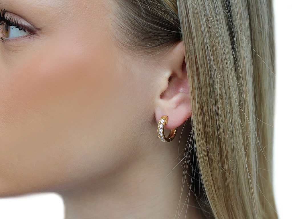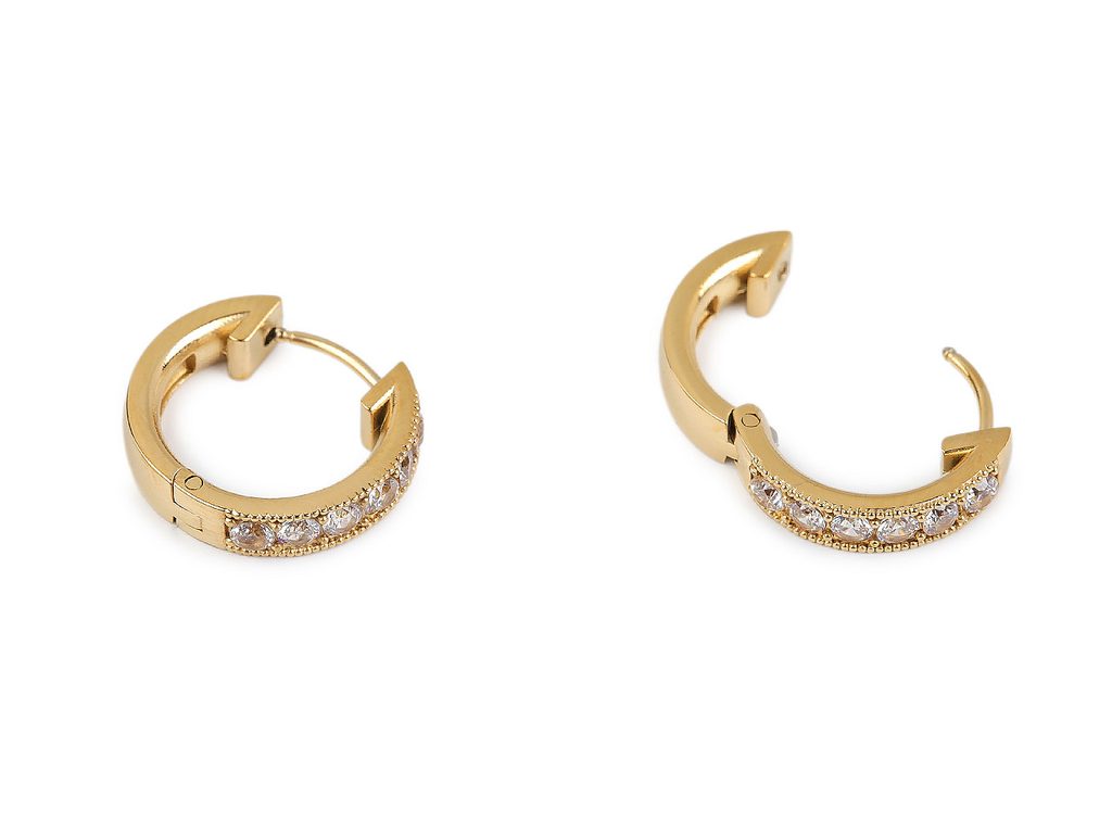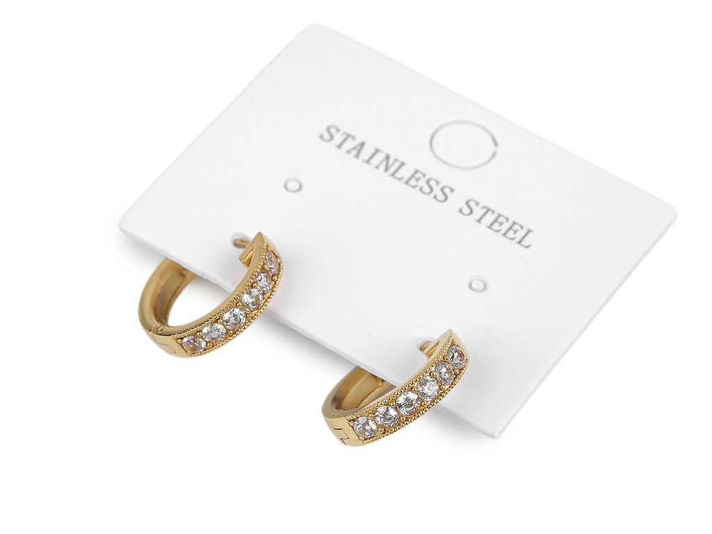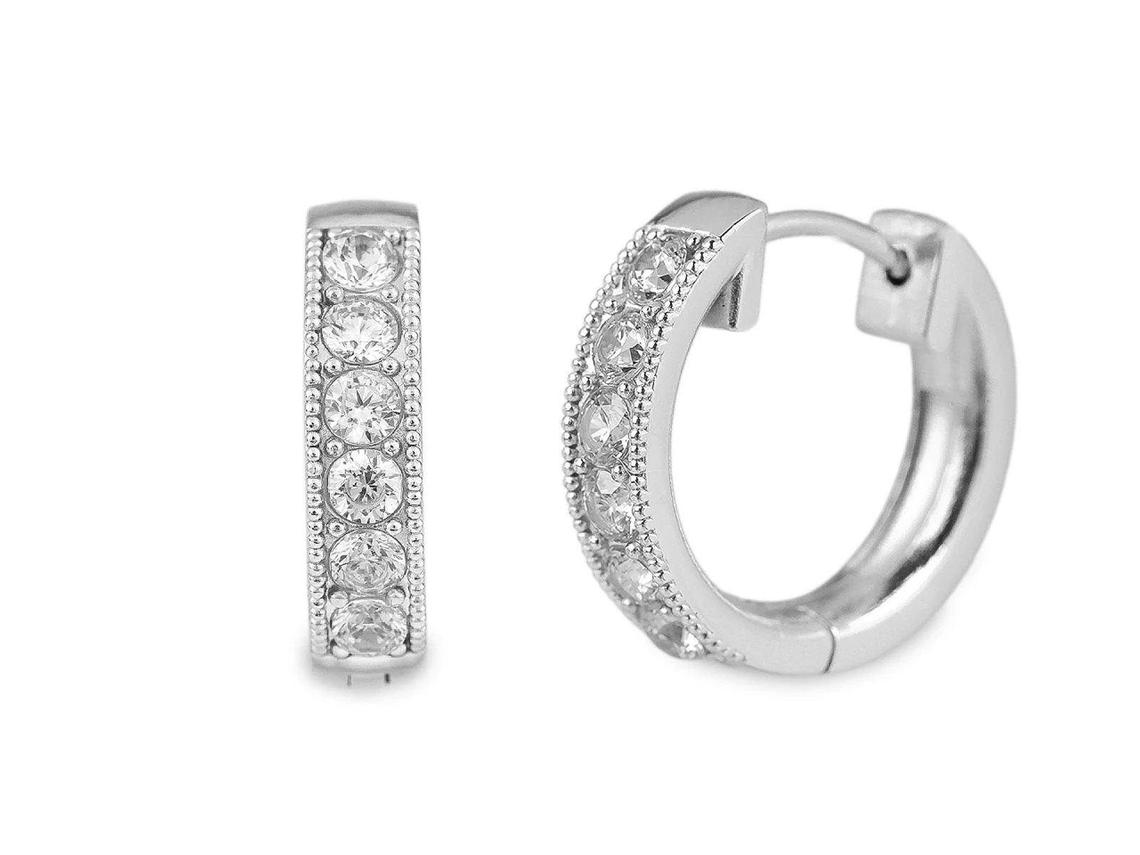 Kvalitní náušnice z nerezové oceli kroužky se hodí ke každodennímu nošení i slavnostním příležitostem. Jejich přední stranu zdobí broušené kamínky, které dodávají oslnivý lesk a přitahují pozornost svým jemným třpytem. Perfektně doplní i byznys styl oblékání.