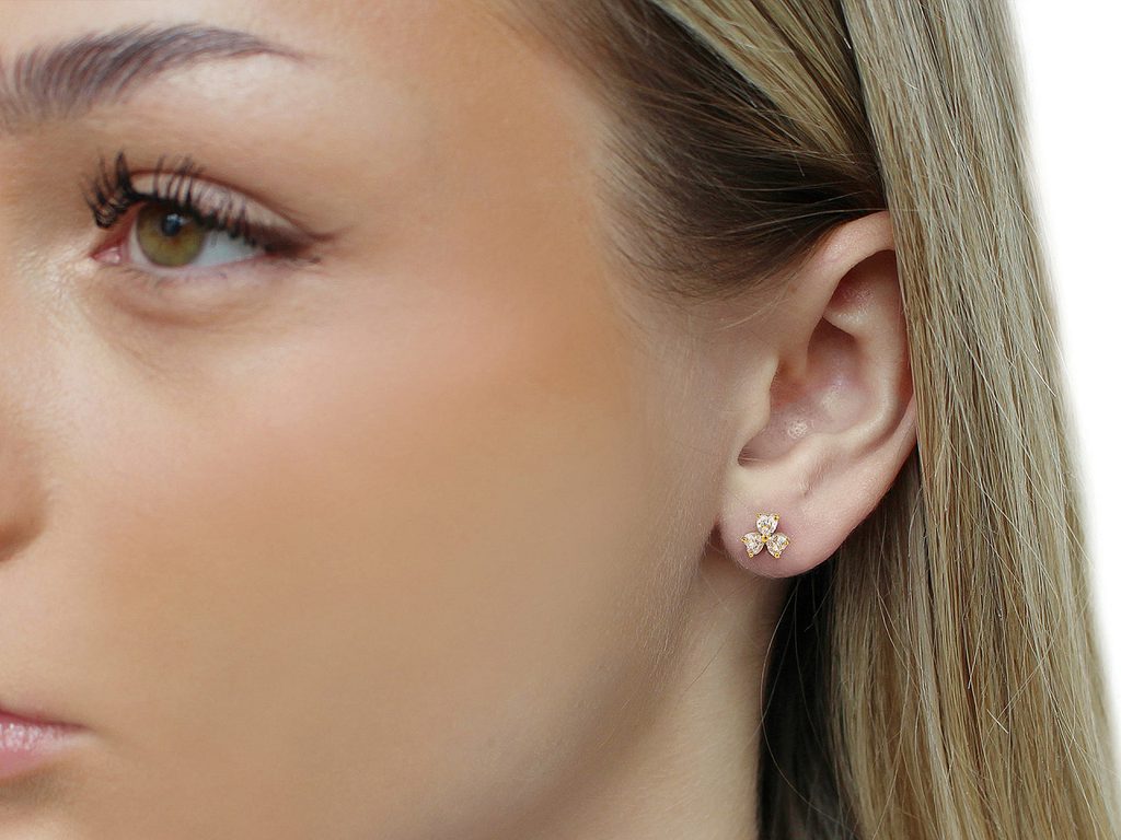 Puzetové náušnice ve tvaru květu trojlístku jsou velice decentní, vynikají svou kvalitou zpracování. Jsou ozdobené broušenými kamínky. Mají precizní, detailní provedení. Jemný květinový design se skvěle hodí k široké škále outfitů, od elegantních večerních šatů až po ležérní denní oblečení. Jsou také skvělým dárkem pro blízké, kteří ocení krásu a trvanlivost tohoto nadčasového šperku.