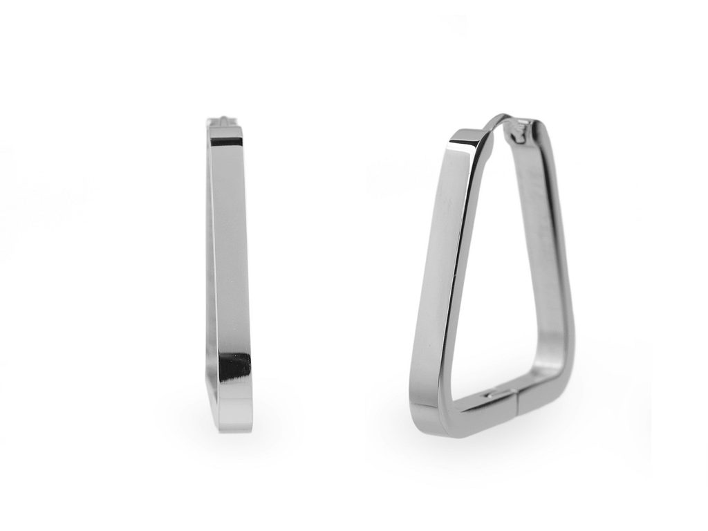Elegantní náušnice z kvalitní nerezové oceli mají moderní trojúhelníkový tvar. Jsou hladké, mají vysoký lesk. Hodí se k jakémukoliv outfitu, perfektně doplní i byznys styl oblékání, oblíbíte si je na každodenní nošení.
