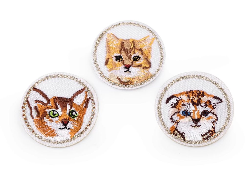 Kulatá nažehlovačka kočky má kvalitní, detailní provedení. Je s výšivkou, jemně se leskne. Proužek po obvodu je vyšitý zlatým lurexem. Vynikne na oblečení pro děti, módních doplňcích i na bytových dekoracích. Má mnohostranné využití, slouží nejen k opravě děravého oblečení, ale i k jeho ozdobení.
