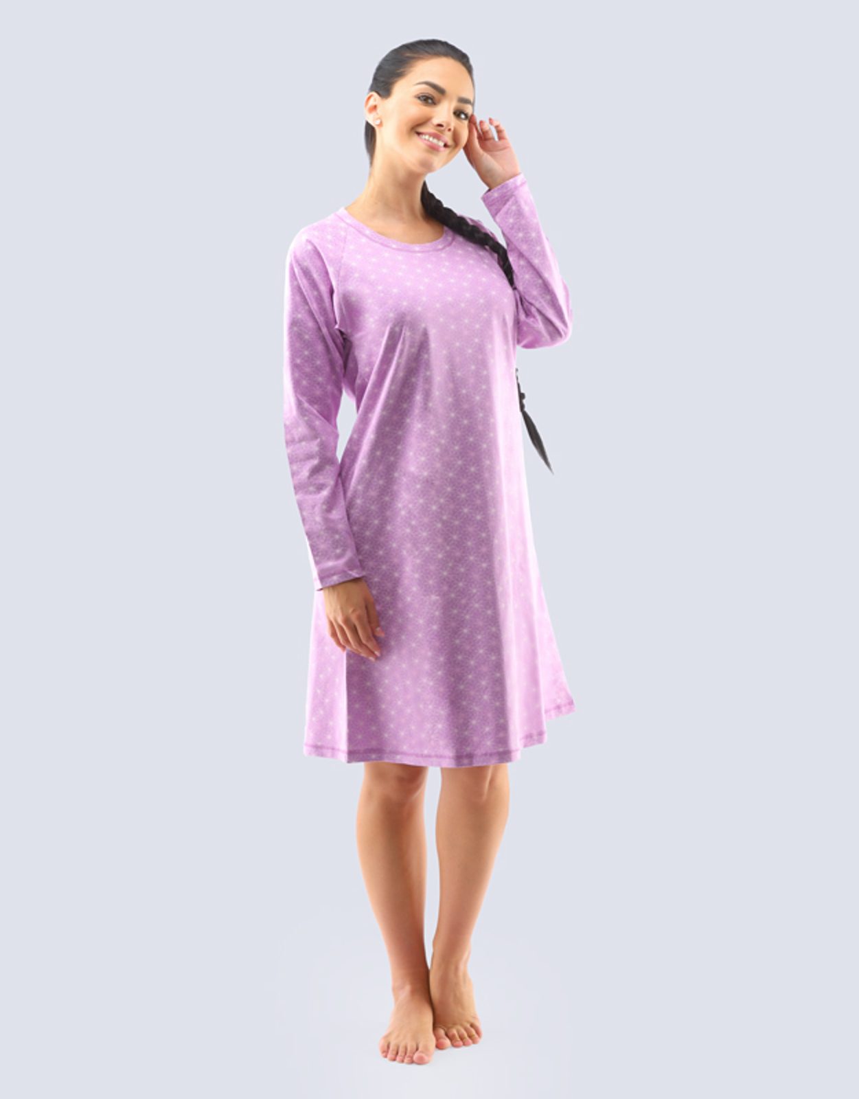 GINA dámské košilka noční dámská dlouhý rukáv, šité, s potiskem 19163P