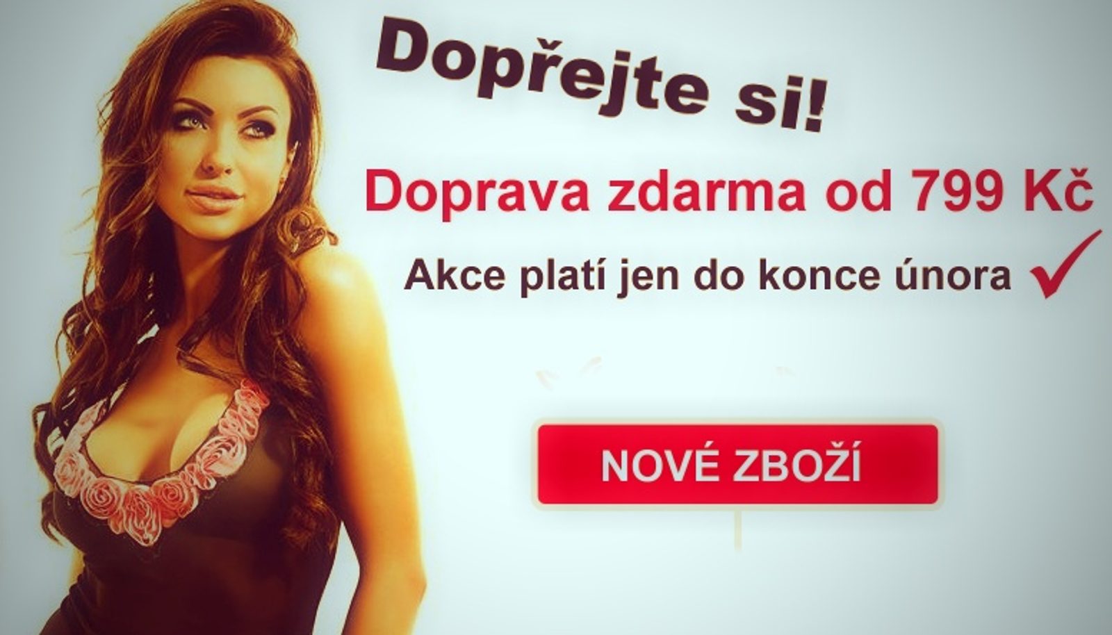 Mimořádná akce - pro posílání Vaší vůle neodolat a koupit - jsme se rozhodli, že podpoříme Vaše nákupy senzační akcí - dopravou zdarma od 799 Kč po České republice! Nakupovat v této senzační akci můžete spodní prádlo i oblečení až do konce února 2013!