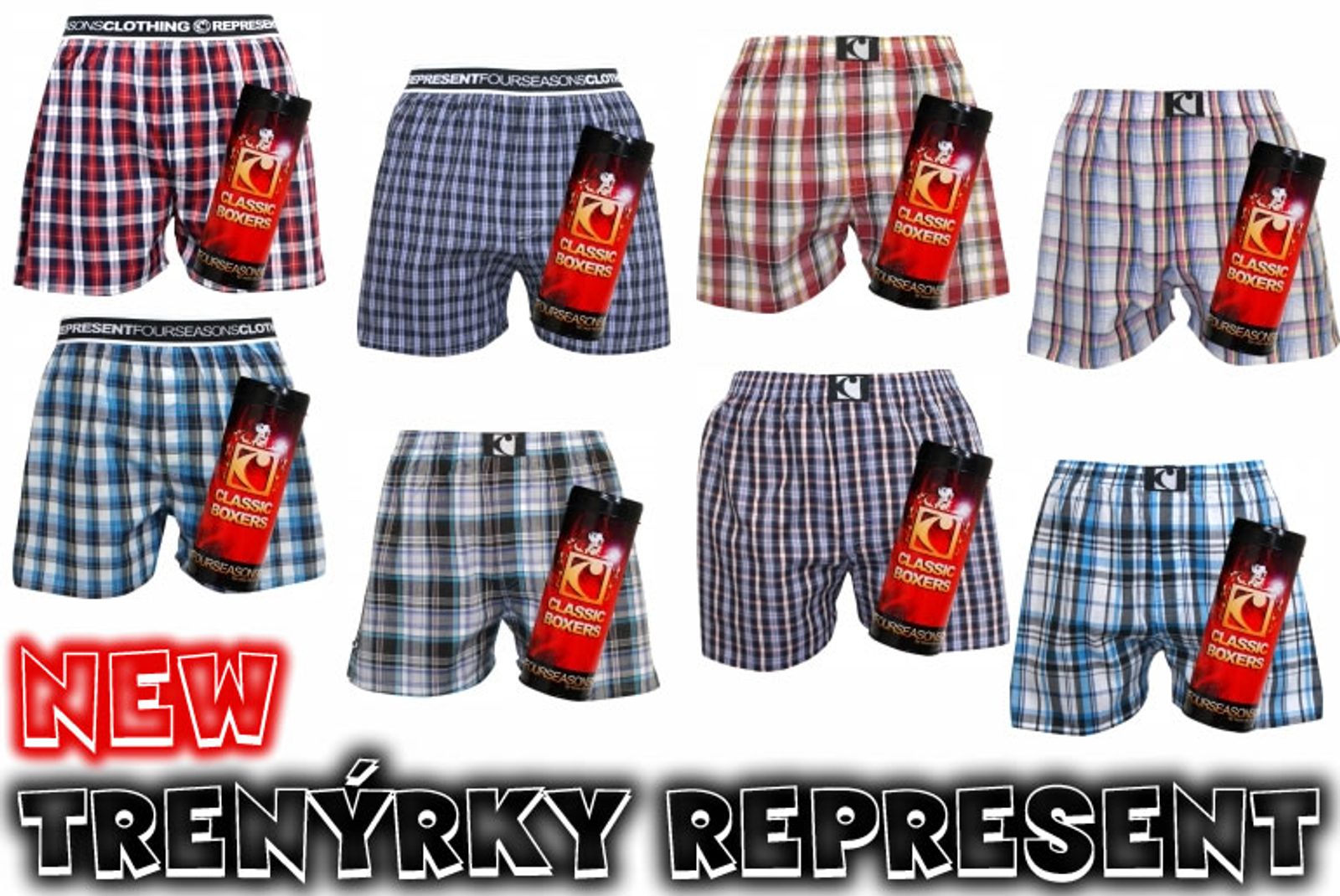 Další řada úspěšných trenýrek od Representu v naší nabídce od 16.dubna. Celou kolekci najdete pod značkou REPRESENT nebo přímo v kategoriích. Mikebox v kategorii Trenky s gumou a kolekci CLASSIC v kategorii Trenky káro. Doufáme, že nové pánské prádlo Represent si opět oblíbíte jako předchozí kolekce. K trenýrkám se opět dávají plechovky. Trenýrky + plechovka.