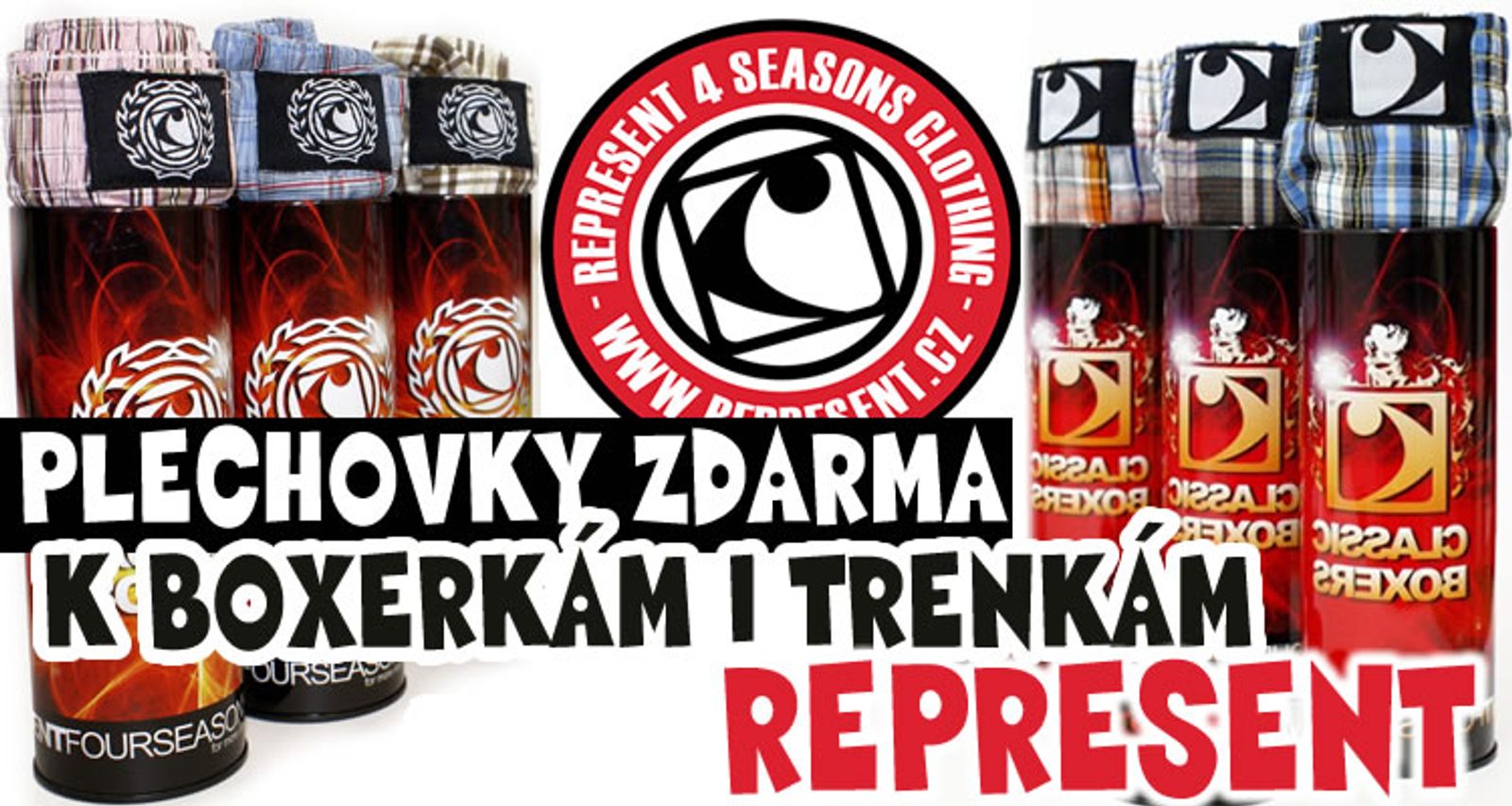 Vážení zákazníci, zákaznice - k trenýrkám REPRESENT i boxerkám REPRESENT - získáváte zdarma plechovku 1ks plechovky = 1 ks trenýrkám. Dříve jsme rovněž balili plechovky dle typu trenýrek - k trenýrkám CLASSIC - byla přidána plechovka CLASSIC, k boxerkám sport - jste získali plechovku SPORT.