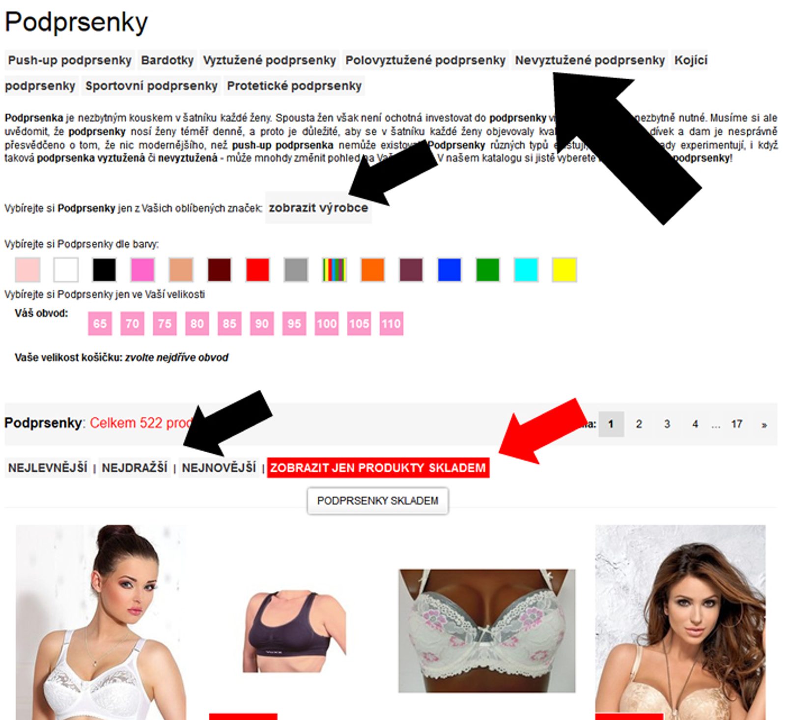 Upravili jsme vzhled výpisu zboží, aby pro Vás byl přívětivější a lépe jste se orientovali na našich stránkách. K tomu mají pomoci různé tlačítkové úpravy, díky nimž stačí klikat na volby, které chcete zobrazit. Například nejprodávanější, zboží skladem, nebo filtrovat podle výrobce. V každé kategorii je nově vidět hned pod nadpisem, jestli se v kategorii nachází nějaké podkategorie a ihned si je můžete i zobrazit.