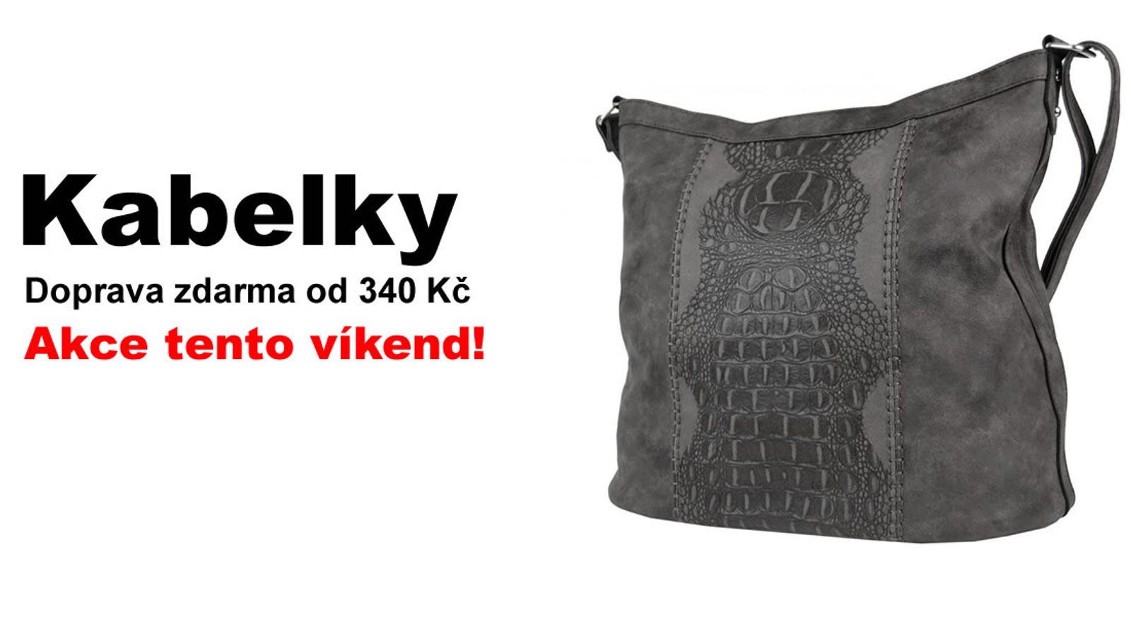 Využíjte tento březnový víkend super akci - Doprava zdarma od 340 Kč neváhejte a vyberte si něco pěkného z naší nabídky! Vyberte si, co se Vám líbí nejvíc a neotálejte s objendávkou, jelikož akce končí už v neděli 12.3.2017 a z větší části je naše nabídka omezena počtem kusů na skladě! Ale pozor - koupit můžete cokoliv z našeho sortimentu a to včetně dámských kabelek, o které je vždy největší zájem a které určitě Vás osloví.