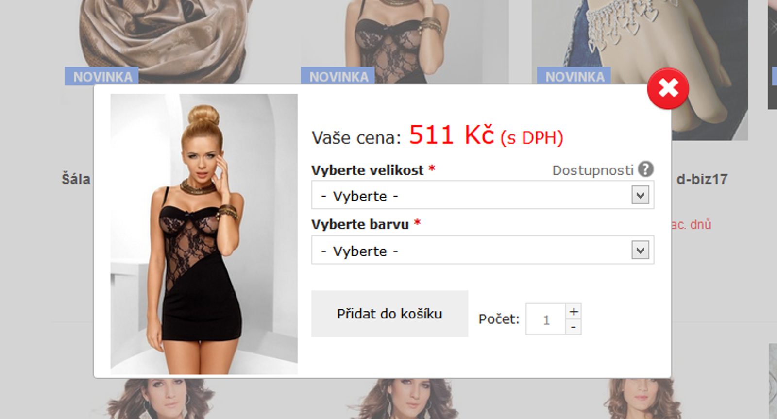 Po přihlášení jako velkoobchodník můžute začít pohodlněji a hlavně rychle nakupovat. U každého boxiku jsme přidali tlačítko koupit, které pomůže obchodníkům rychleji nakoupit. Po stisknutí tlačítka koupit vyskočí okno, v kterém si budete moci vybrat velkost a barvu ihned, aniž byste museli procházet detail.