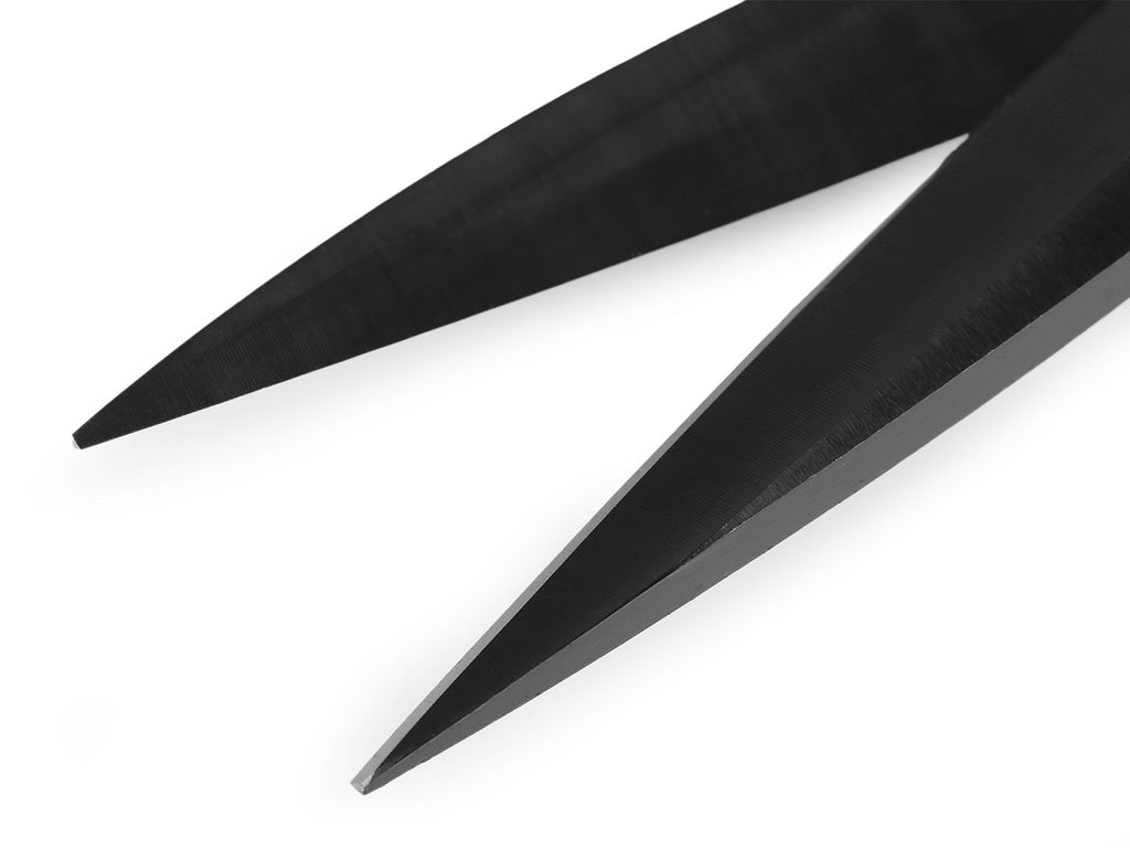 Bytelné celokovové nůžky využijete při stříhání různých textilií a nití, dokonce výborně stříhají i několik vrstev látky. Pogumovaná rukojeť se při práci dobře drží. Špička je ostrá.