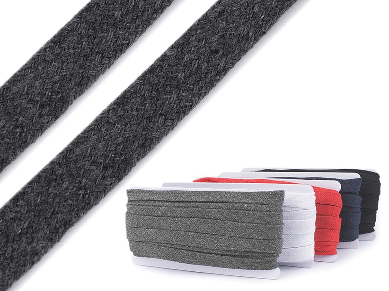 Plochá bavlněná šňůra je velice pevná a odolná. Uvnitř nemá výplň, je dutá.