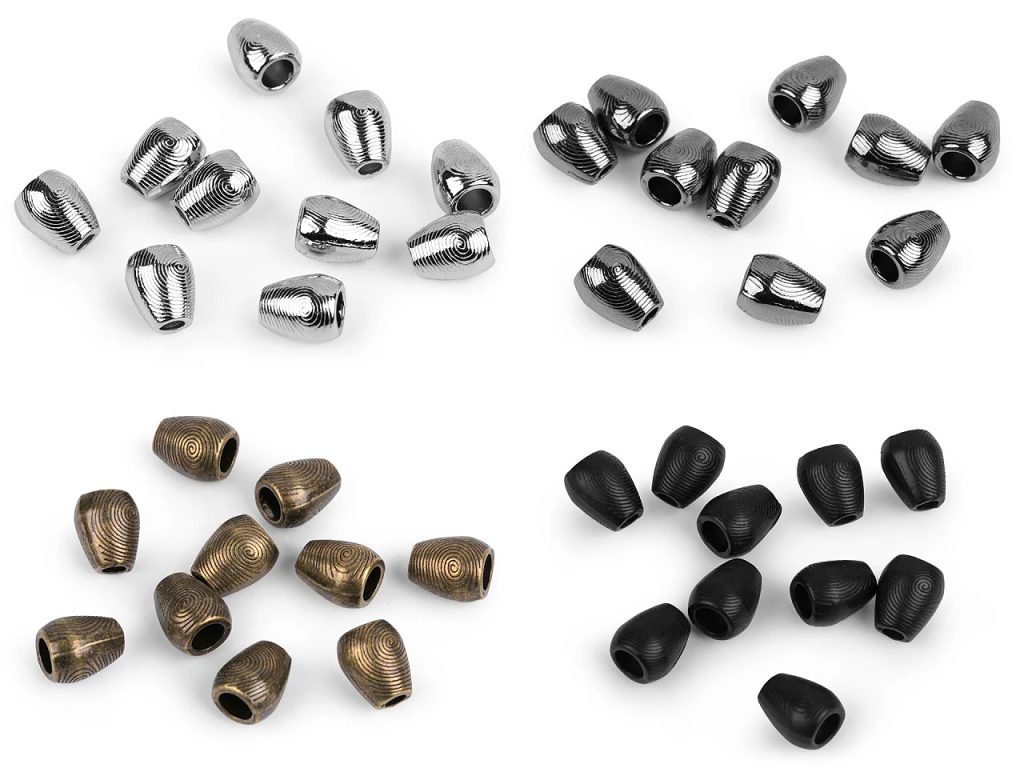 Kovová koncovka je na povrchu ozdobená jemným reliéfem. Využijete ji k zakončení šňůrek, které lemují kapuce nebo spodní lem mikin, bund, kabátků, pasu šatů apod. Zabraňuje vytažení šňůry z tunýlku.