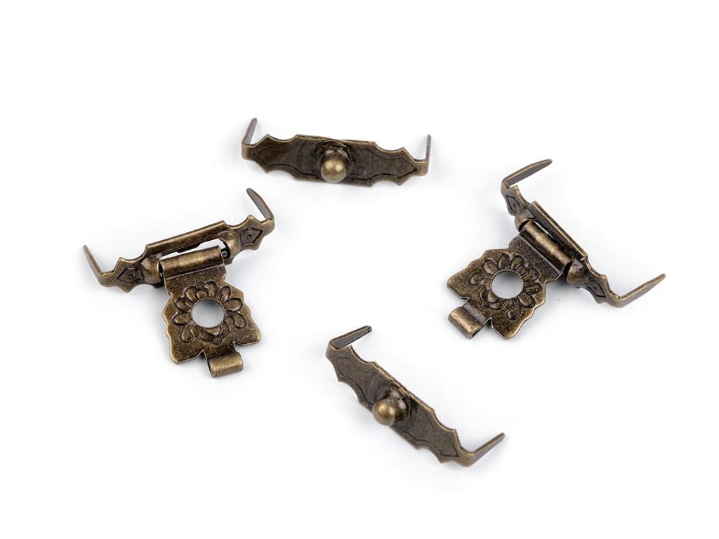 Kovové zapínání ve vintage stylu bude praktickým i ozdobným prvkem, který využijete k uzavírání dřevěných a kartonových krabiček, menších truhliček, šperkovnic, kufříků apod. Skládá se ze dvou částí.