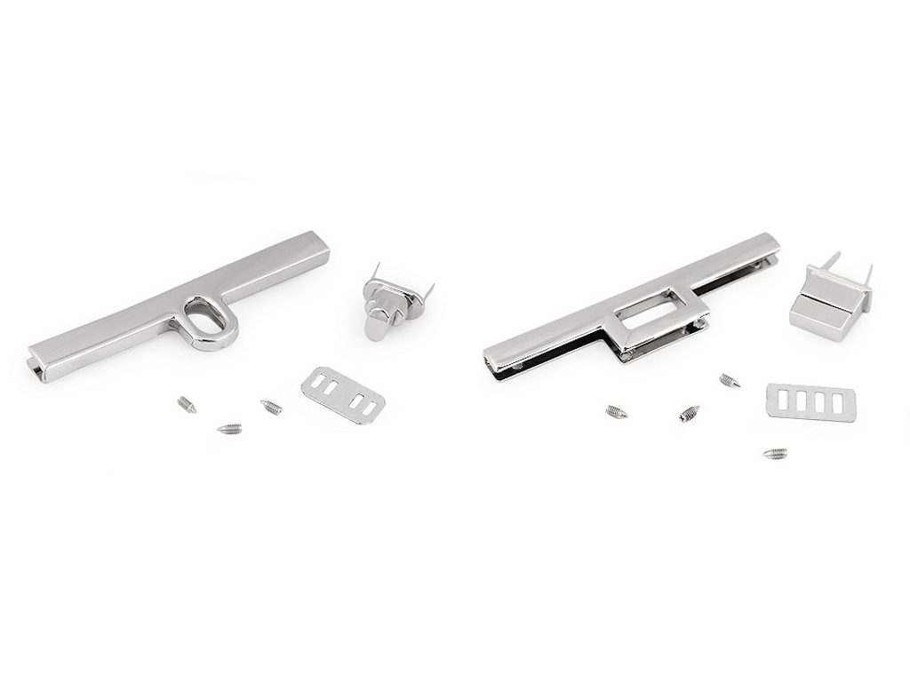 Otočné zapínání je vhodné na kabelky a tašky s klopou. Jeden díl připevníte pomocí přiložených šroubků do klopy. Druhý díl připevníte pomocí plíšku, skrz který ohnete nožičky.