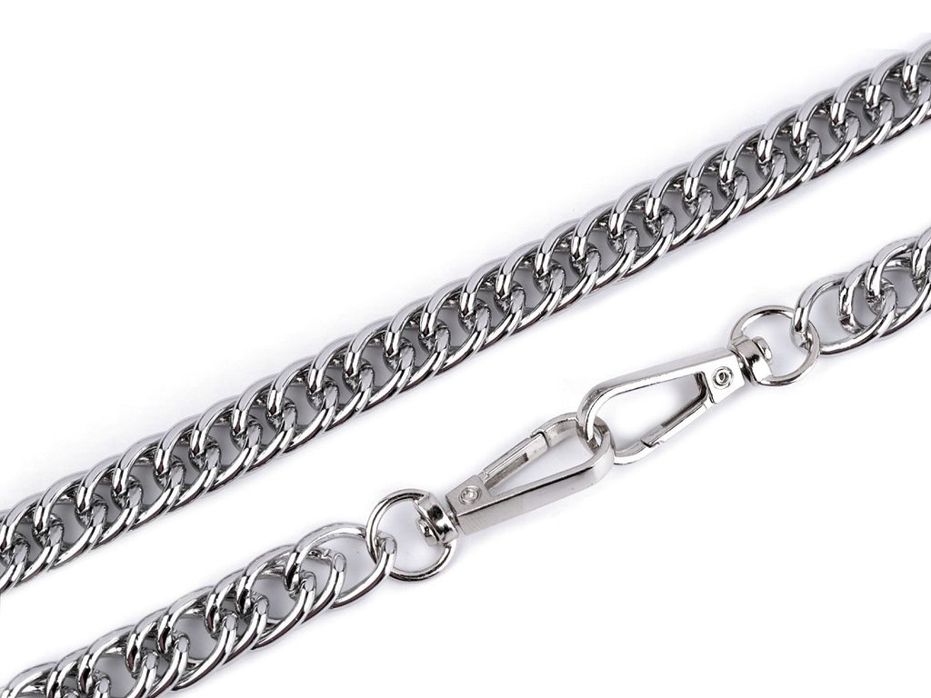Kovový řetízek je vhodný na menší kabelky, psaníčka a pouzdra na mobilní telefony. Na obou jeho koncích najdete připevněné karabinky.