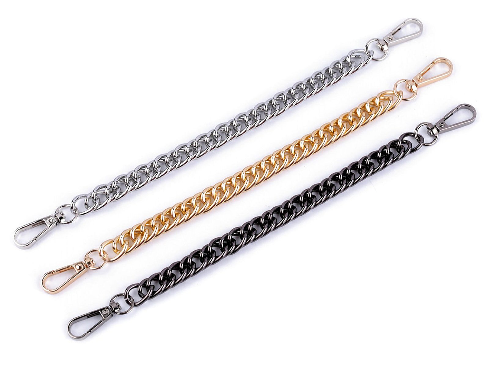 Krátký kovový řetízek vynikne jako stylové ucho na kabelce, psaníčku i třeba městském batohu. Na obou jeho koncích jsou připevněné karabinky.