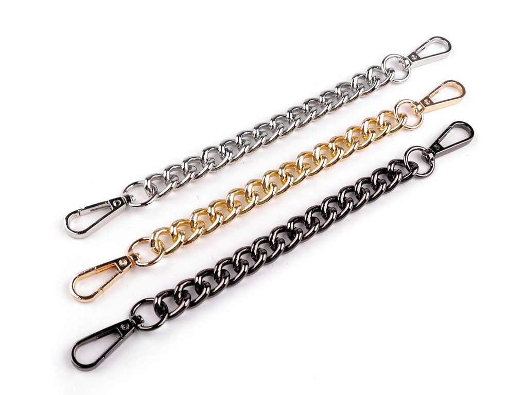 Krátký kovový řetízek využijete jako stylové ucho na kabelku, psaníčko a třeba i městský batoh. Na obou jeho koncích najdete připevněné karabinky.