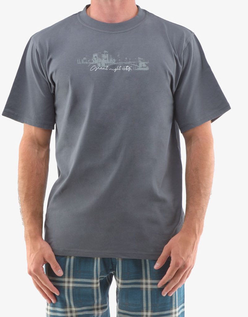 pyžamo krátké pánské, šité, s potiskem značky GINA, kód 79134. Složení: 100% Bavlna