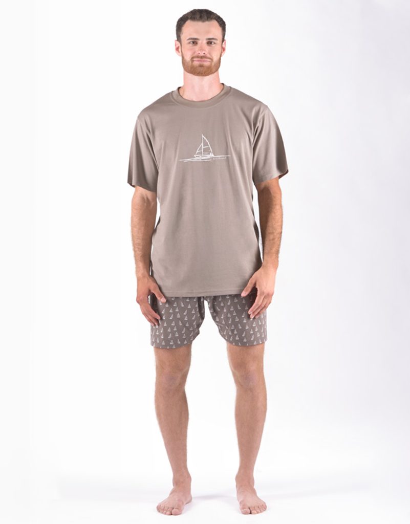 pyžamo krátké pánské, šité, s potiskem značky GINA, kód 79172. Složení: 100% Bavlna