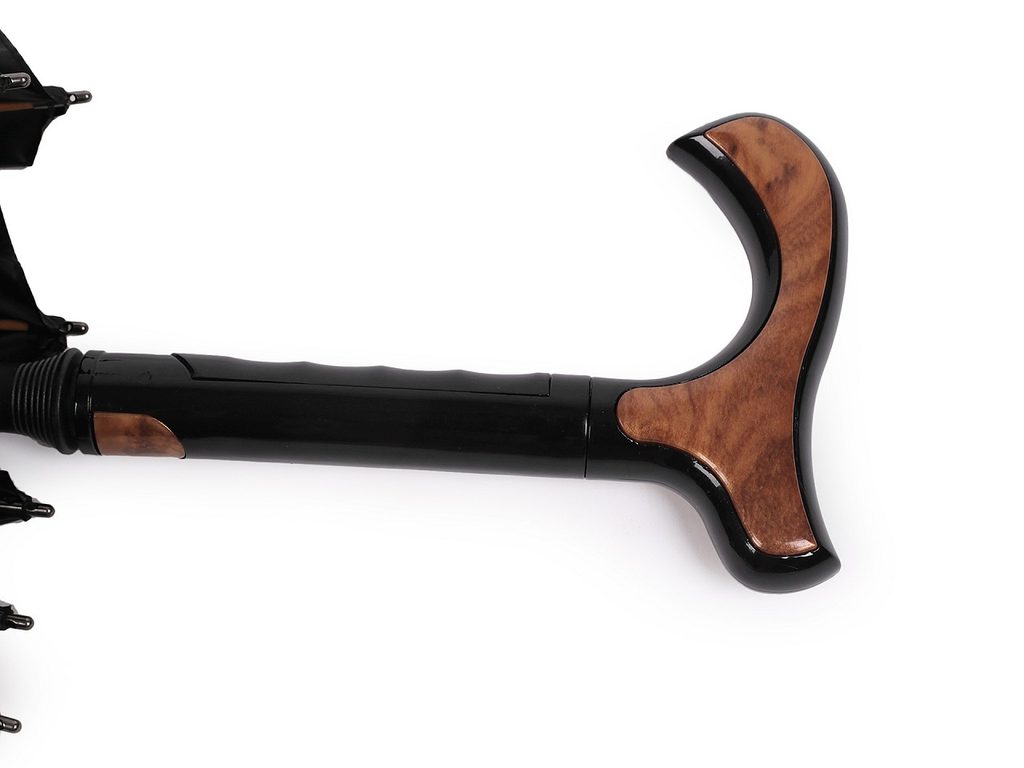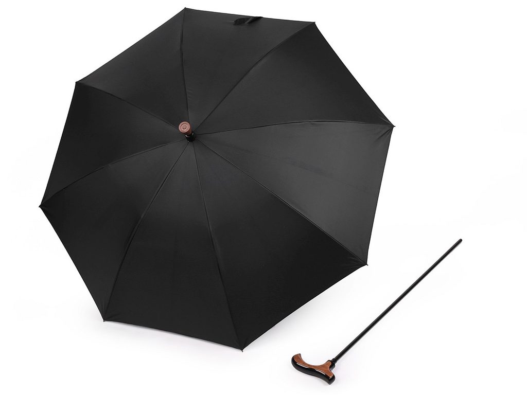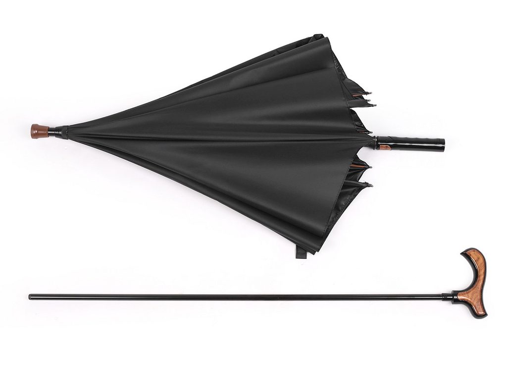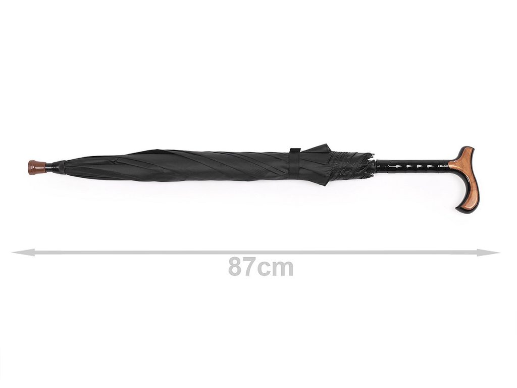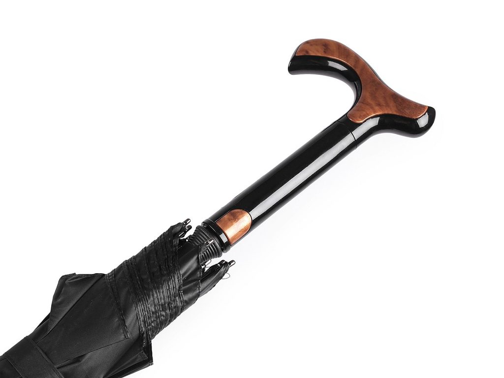 Vystřelovací deštník s vycházkovou holí je vyrobený z kvalitního materiálu. Ve středové tyči má vloženou vycházkovou hůl, která se dá v případě potřeby pootočením vytáhnout. Když neprší, slouží jako hůl celý deštník, v dešti se hůl vytáhne. Tvarovaná rukojeť s imitací dřeva padne přímo do ruky. Nahoře na deštníku je široká patka na pohodlnou chůzi.