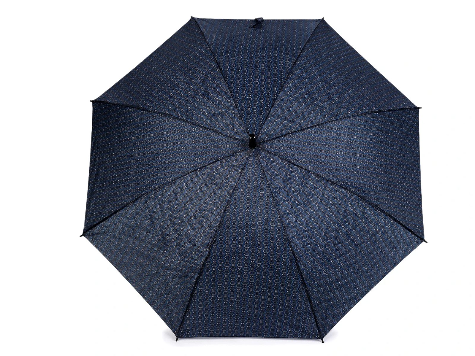 Pánský vystřelovací deštník má potah s jemným designem s různými motivy. Konstrukce deštníku je z kovového drátu a pružných lamel, tvoří osm polí. Díky nim je velice pevný, neohne se ani za největšího nečasu. Klasická tyč je zakončená pevnou rukojetí.