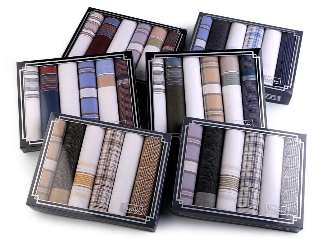 V krabičce najdete 6 čtvercových kapesníků.