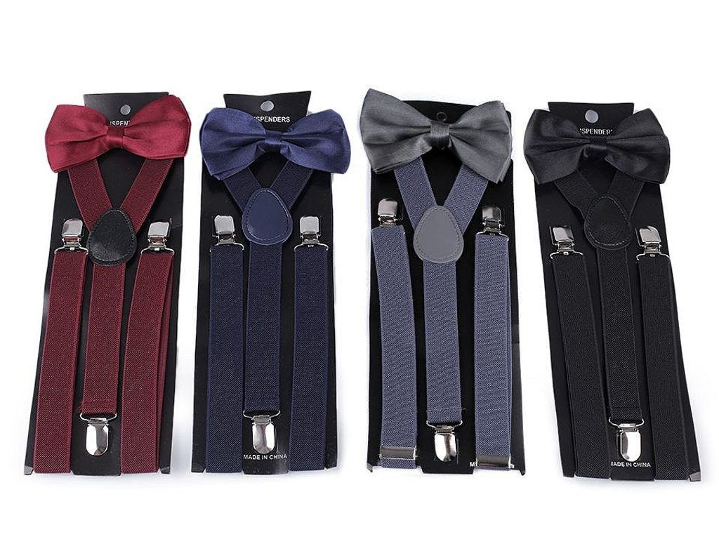 Společenská sada barevně sladěného motýlka a šlí potěší každého chlapce. Využije ji do tanečních, na svatbu a jiné společenské události.