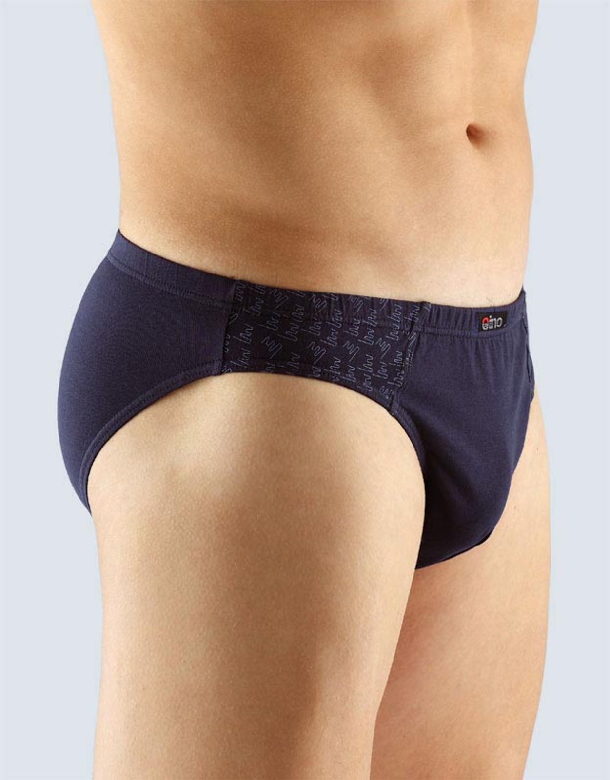 slipy s úzkým bokem, úzký bok, šité, s potiskem značky GINA, kód 70029. Složení: 92% Bavlna 8% Elastan. Kolekce: EMCO