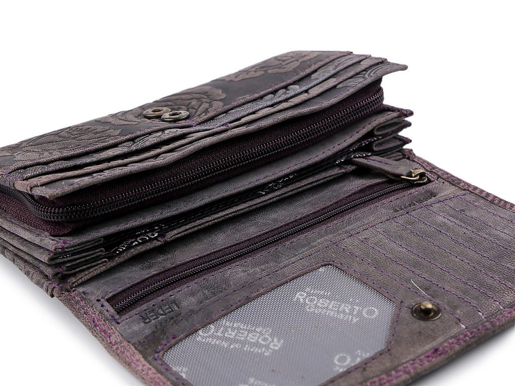 Luxusní dámská peněženka z pravé kůže má velice kvalitní provedení a chytrý design. Má elegantní povrch s velkými raženými vzory.