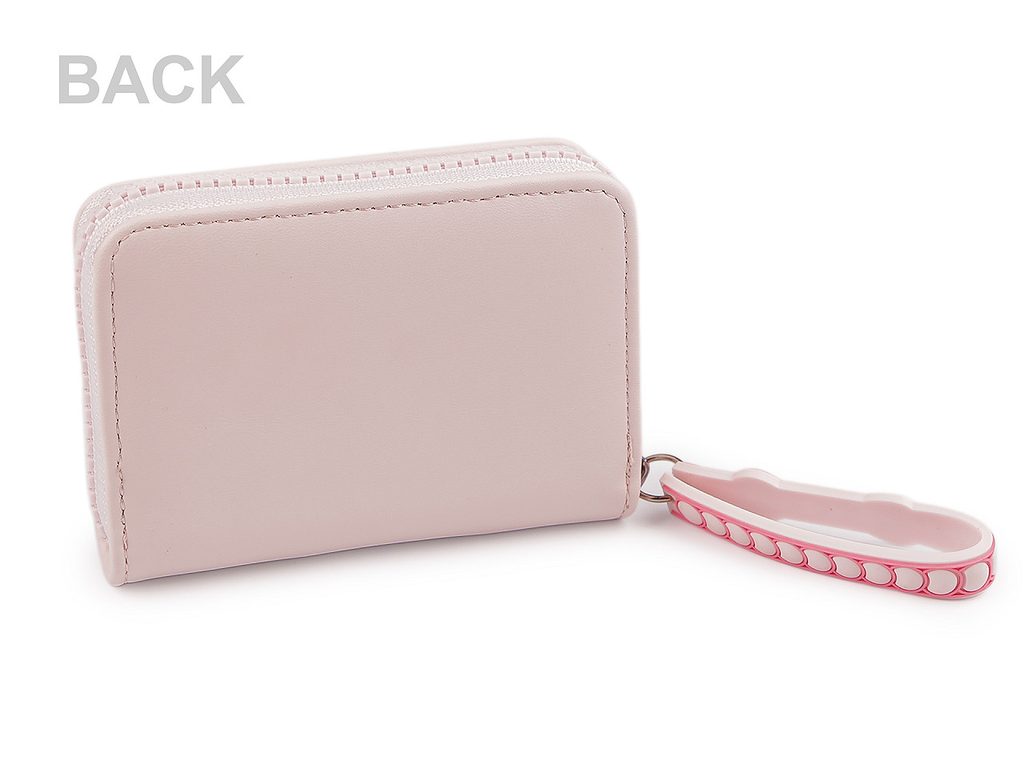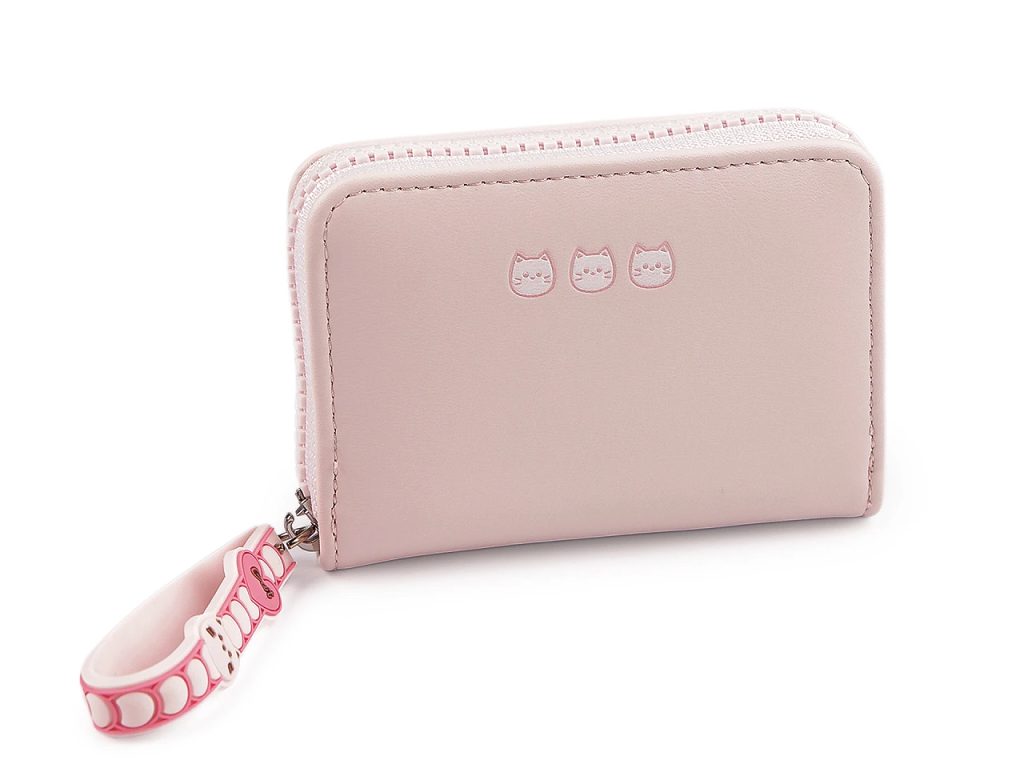Malá dětská peněženka má přední stranu ozdobenou reliéfním potiskem koček. Zapíná se na zip, uvnitř děti najdou 2 přihrádky na bankovky, 4 kapsy na karty a mincovník na zip. K zipu je připevněné praktické silikonové poutko do ruky.