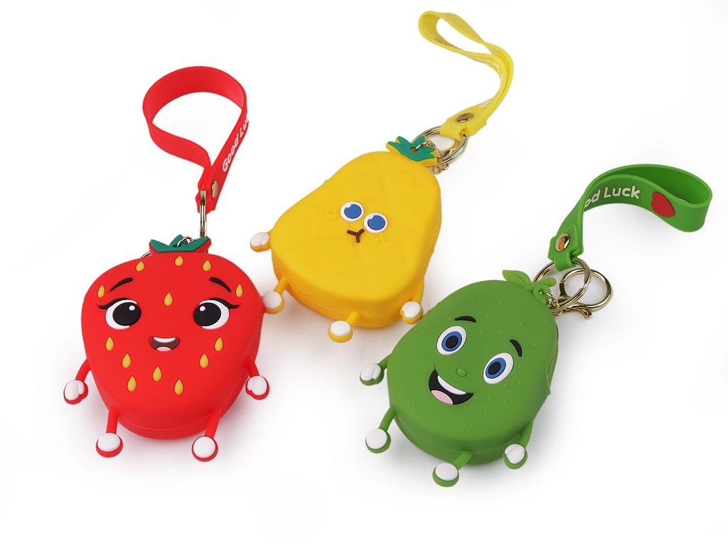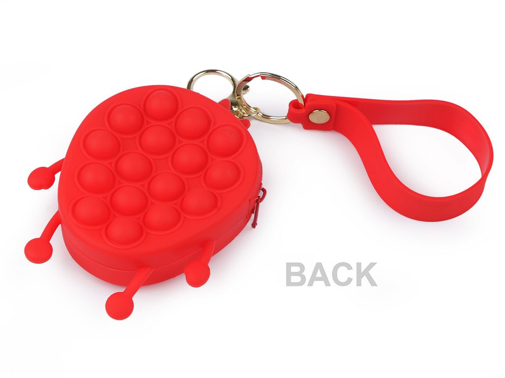 Malá silikonová peněženka ve tvaru ovoce s poutkem a karabinou se dá využívat i jako klíčenka. Zavírá se na zip. Na přední straně má motiv obličeje, na zadní straně najdete antistresové bublinky, se kterými je zábava při dlouhé chvíli.