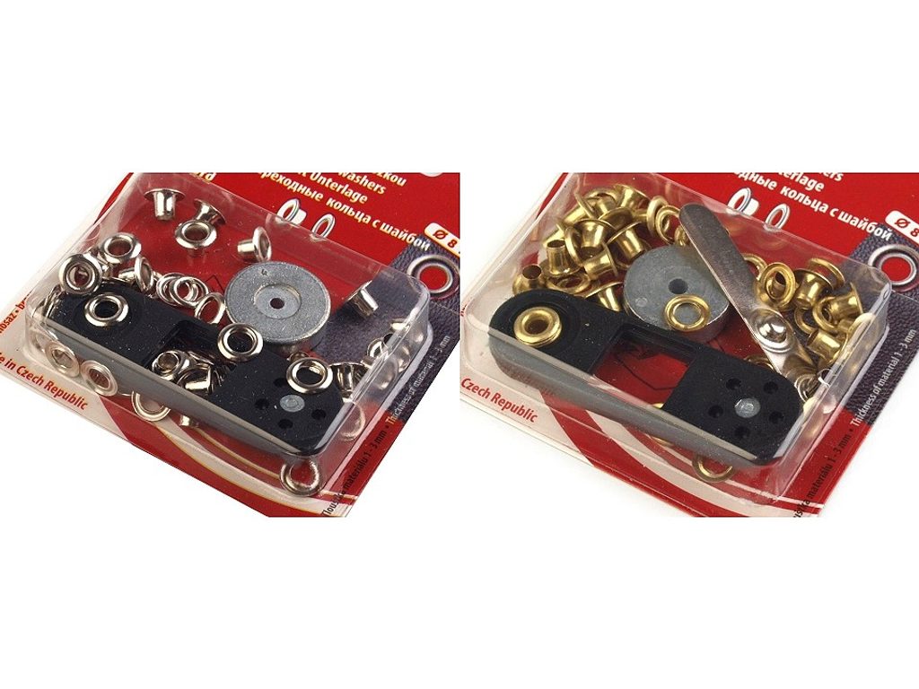 Použití: Průchodku využijete především v oblasti textilní výroby, například při šití bund, mikin apod. Nýtování se provádí ručně mini lisem, který je součástí balení.