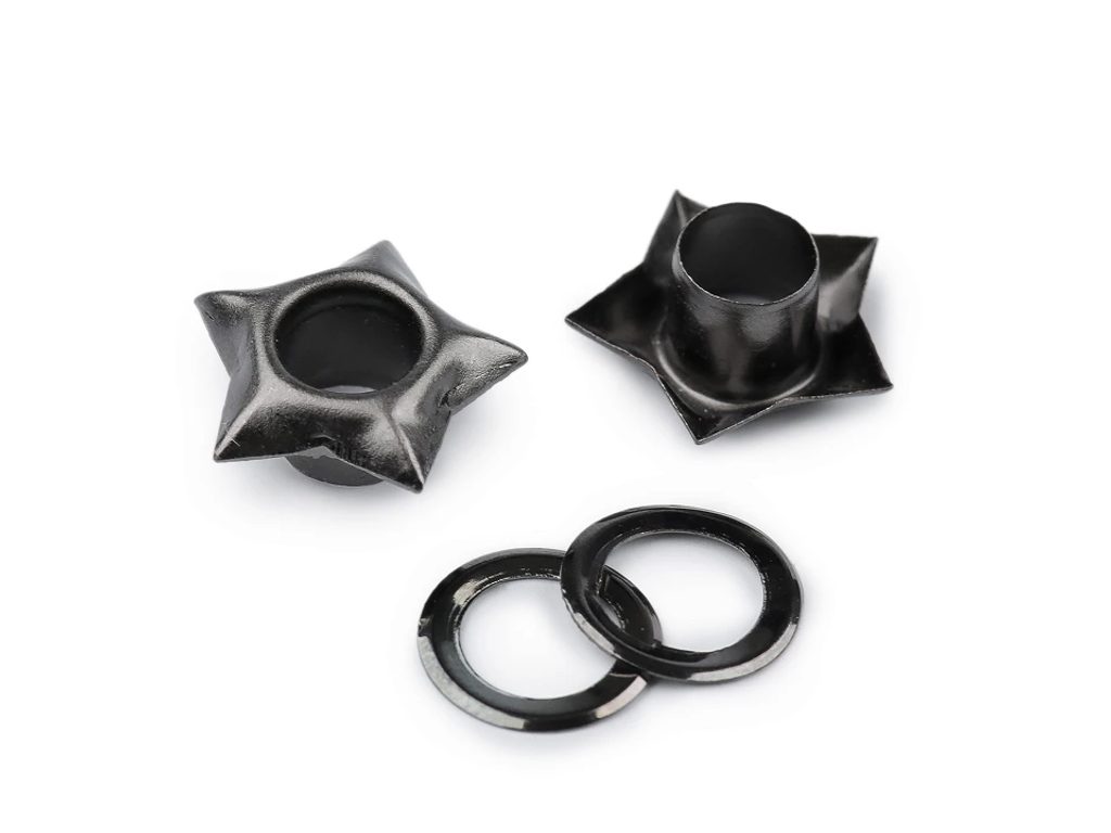 Kovová průchodka vyniká svým vzhledem ve tvaru hvězdy. Je nerezivějící. Ozdobíte s ní mikiny, šaty, bundy, vesty, batohy i tašky.