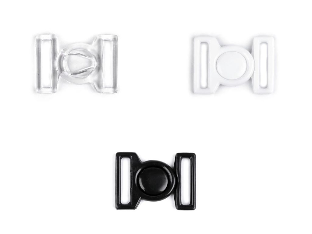 Plastové zapínání je vhodné na plavky. Zapíná se vsunutím jednoho dílu mezi druhý díl a zacvaknutím.