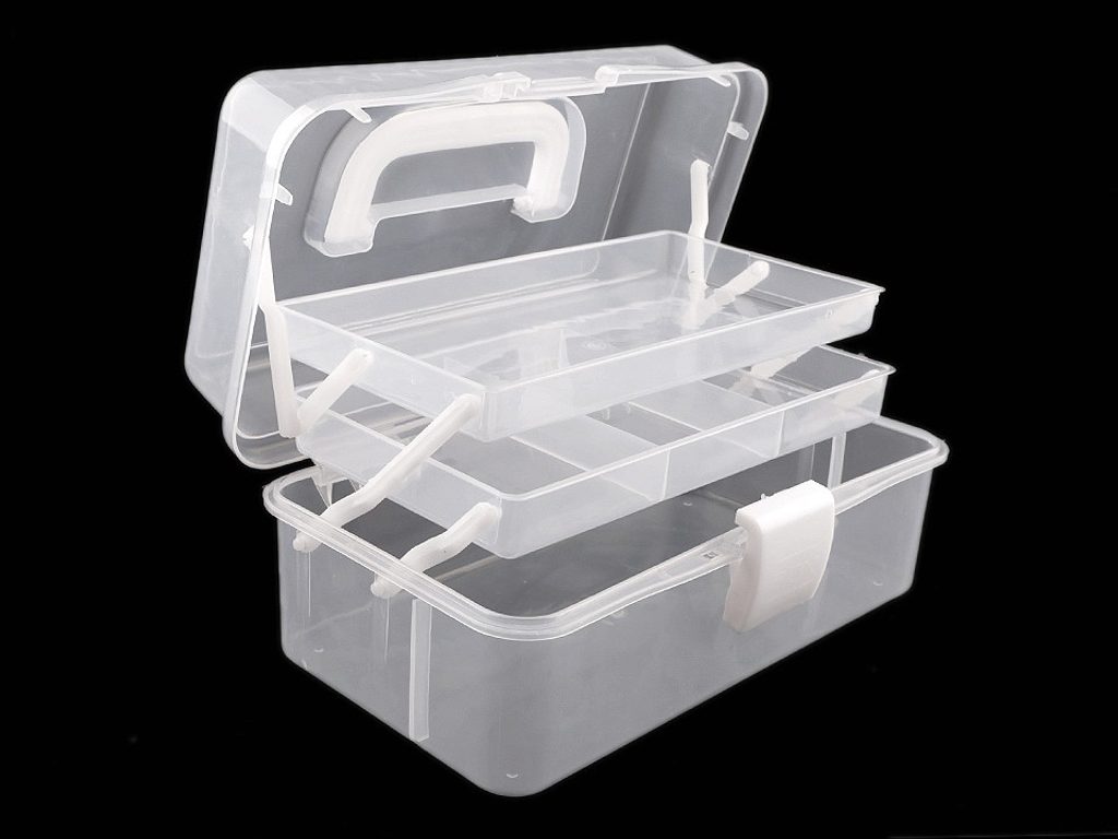 Průhledný rozkládací zásobník je nesmírně praktický pomocník při skladování všelijakých komponentů pro kreativní tvorbu. Má jednoduché pákové uzavírání a rukojeť na pohodlné přenášení. Je vhodný i pro švadleny, které ocení, že je dovnitř vidět.