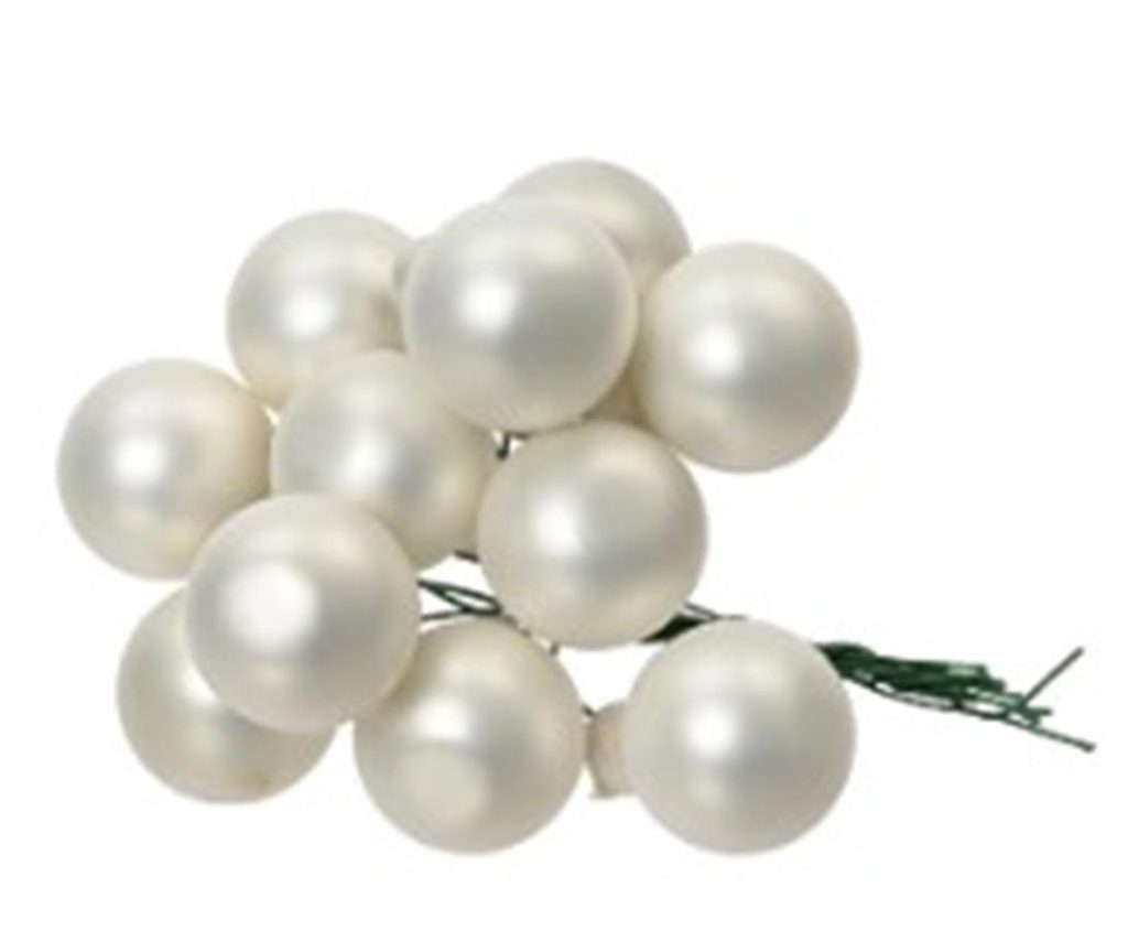 Dekorace s bobulemi. Průměr : průměr 2,5 cm. Barva : bílá. Materiál : sklo.