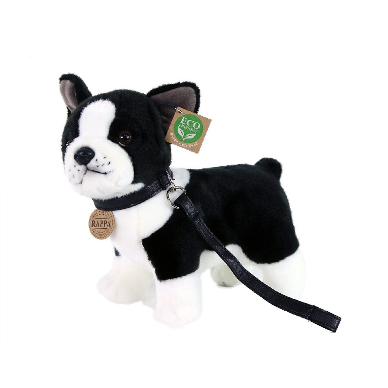 Plyšový pes francouzský buldoček o velikosti 23 cm je vyroben z exkluzivní, velmi kvalitní plyše, součástí je koženkové vodítko.