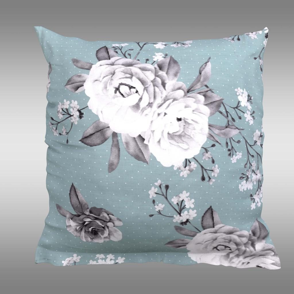 - Barva povlaku: podklad zelený s bílými puntíky, vzor světle šedé a bílé květy