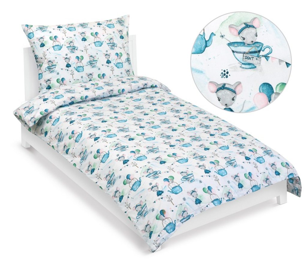 Povlečení bavlněné Junior - 140x200, 70x90 cm Myška v hrnečku modrá naleznete v kategorii: Povlečení bavlněné 140x200