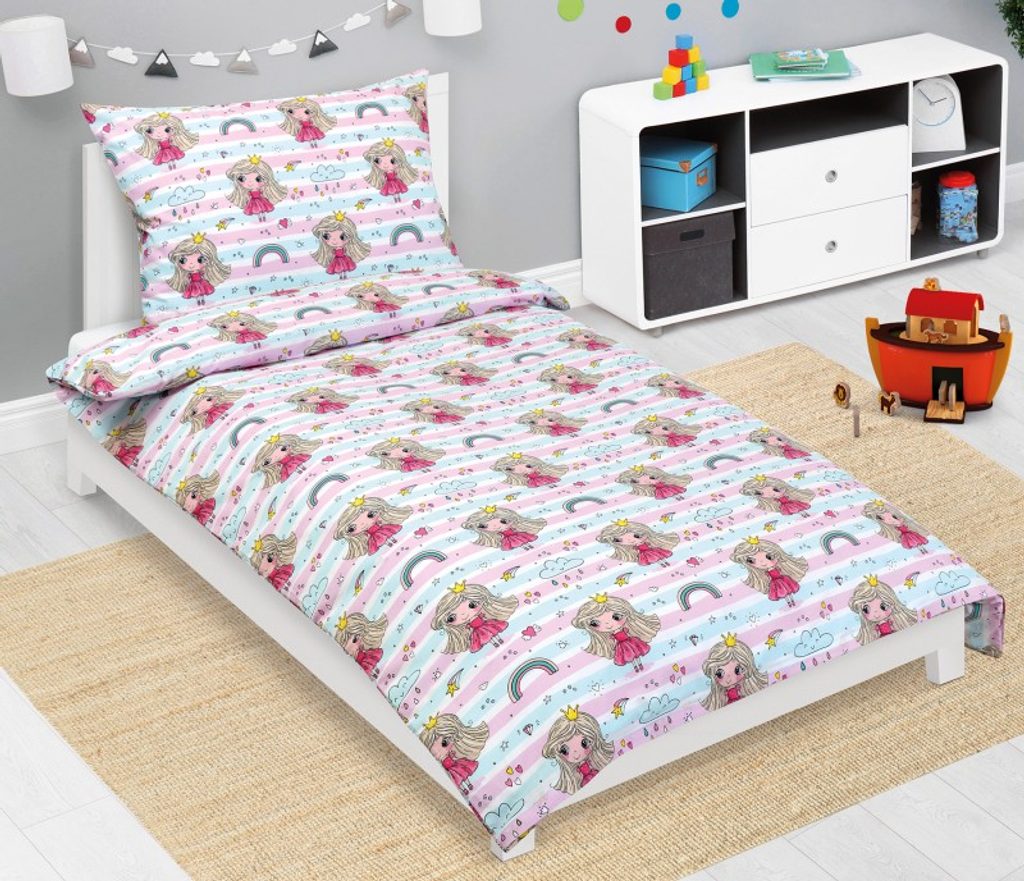 Povlečení bavlněné Junior - 140x200, 70x90 cm Princezna s duhou růžová naleznete v kategorii: Povlečení bavlněné 140x200