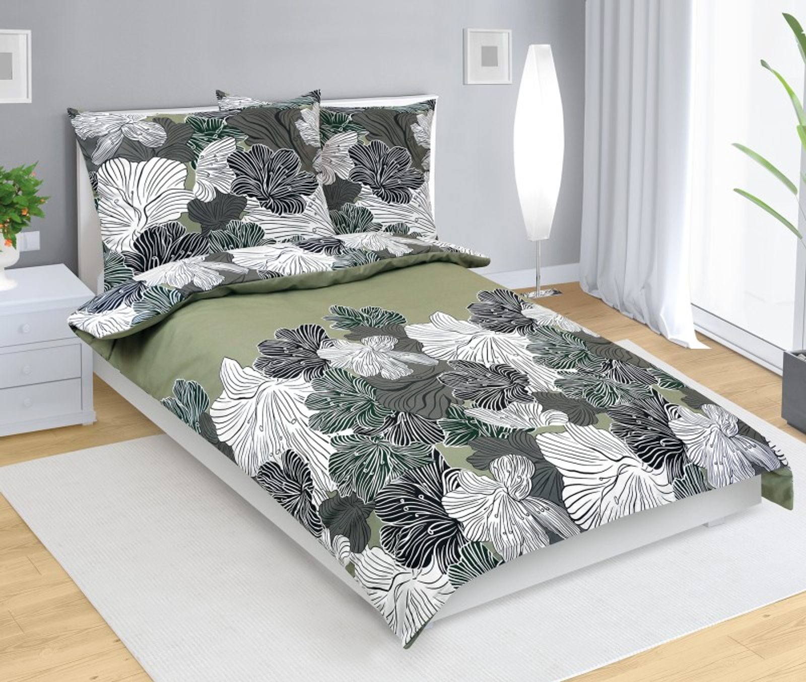 Bavlněné povlečení DELUX MAGNÓLIE zelená