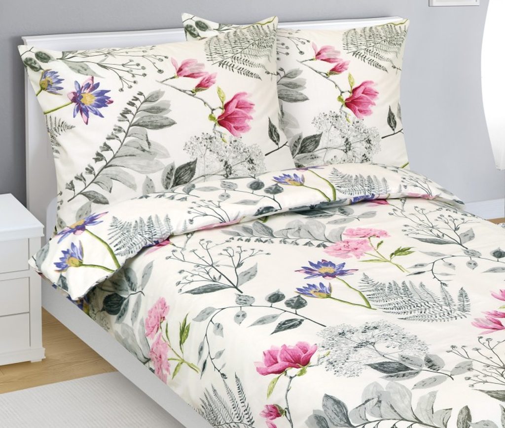 Povlečení bavlněné Šedá,Smetanová,Růžová 90/198
