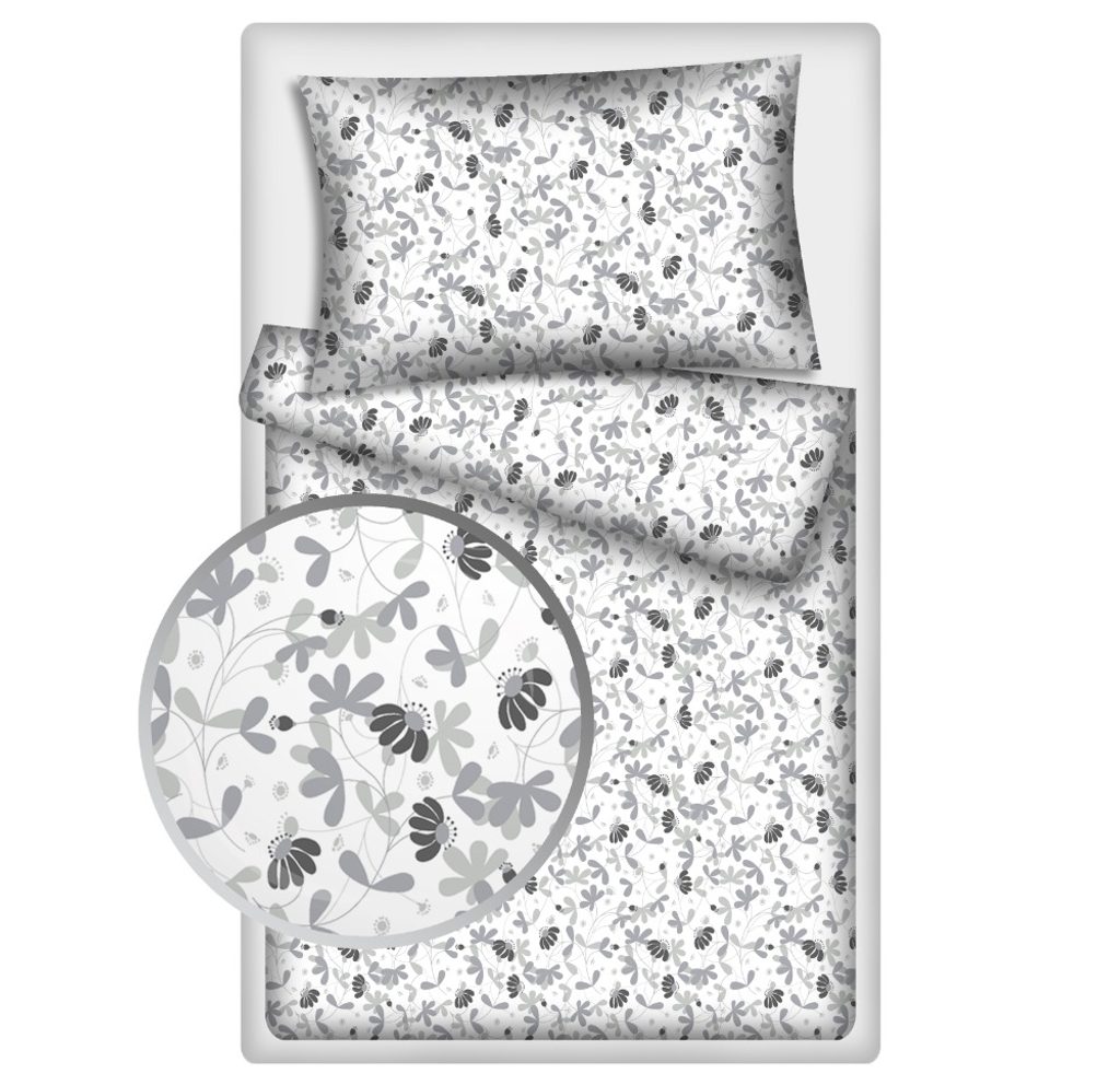 Povlečení hladká bavlna LUX - Kytičky šedé 140x200 + 70x90 cm naleznete v kategorii: Povlečení bavlněné