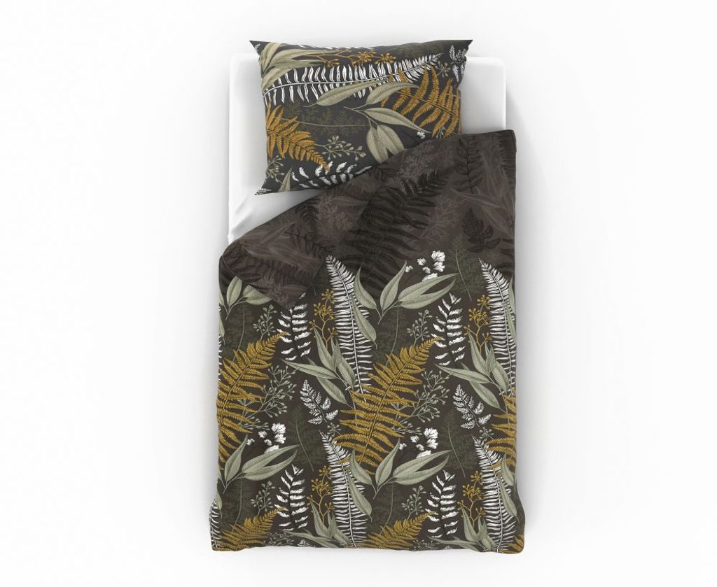 Luxury collection představuje kolekci velmi moderních a nadčasových desénů. Použitá tkanina je velmi kvalitní a zároveň jemná. Saténové povlečení KAPRADÍ je laděno do příjemných hnědých tónů.