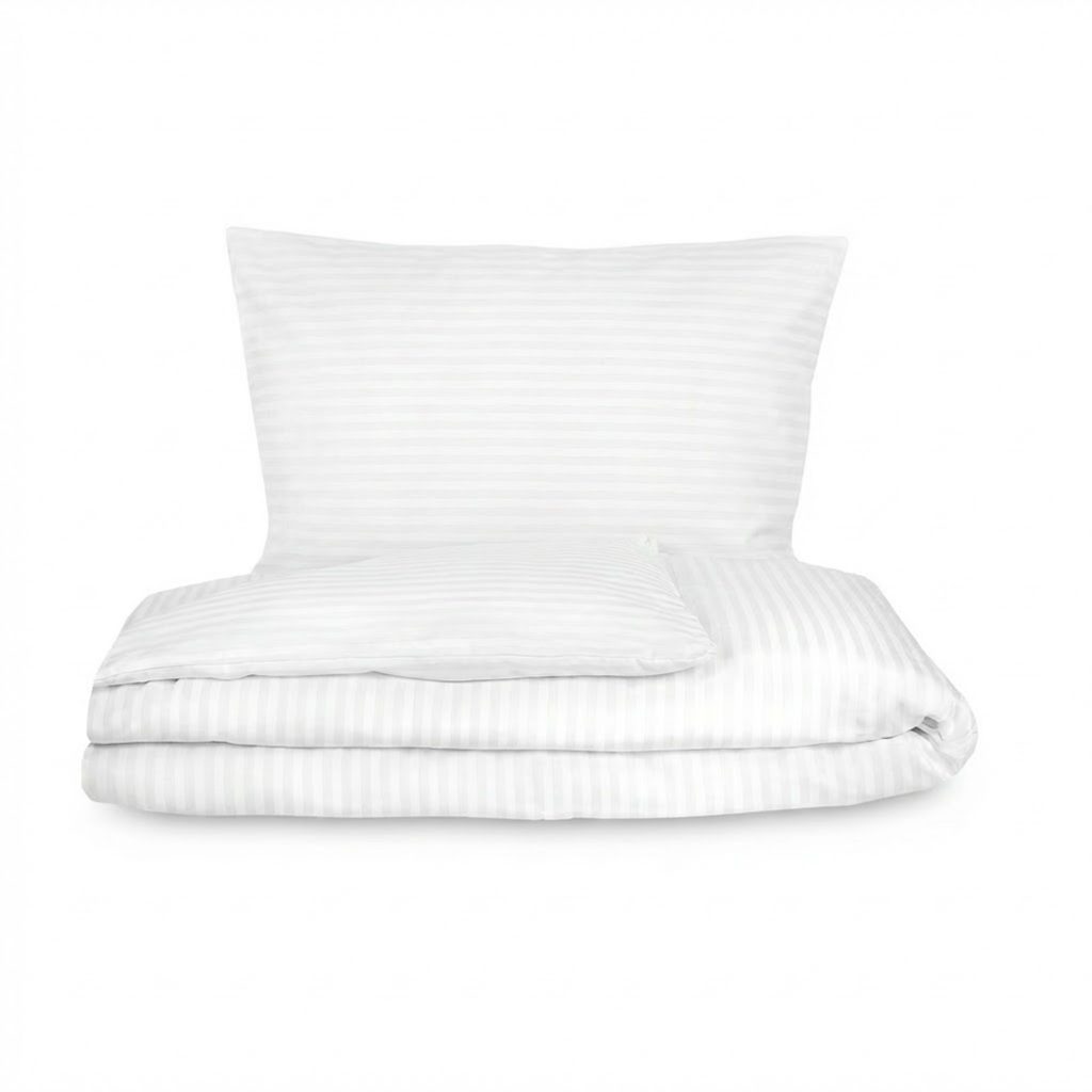 Kolekce saténového povlečení je charakteristická vodorovnými proužky, které jsou vytvořeny vlastním tkaním. Povlečení z bavlněného saténu vyniká decentním leskem a působí velmi luxusně. Použitá tkanina je velmi kvalitní a zároveň jemná. Saténové povlečení s proužkem v bílé barvě působí velmi čistě a lehce ho zkombinujete s barevnými doplňky.