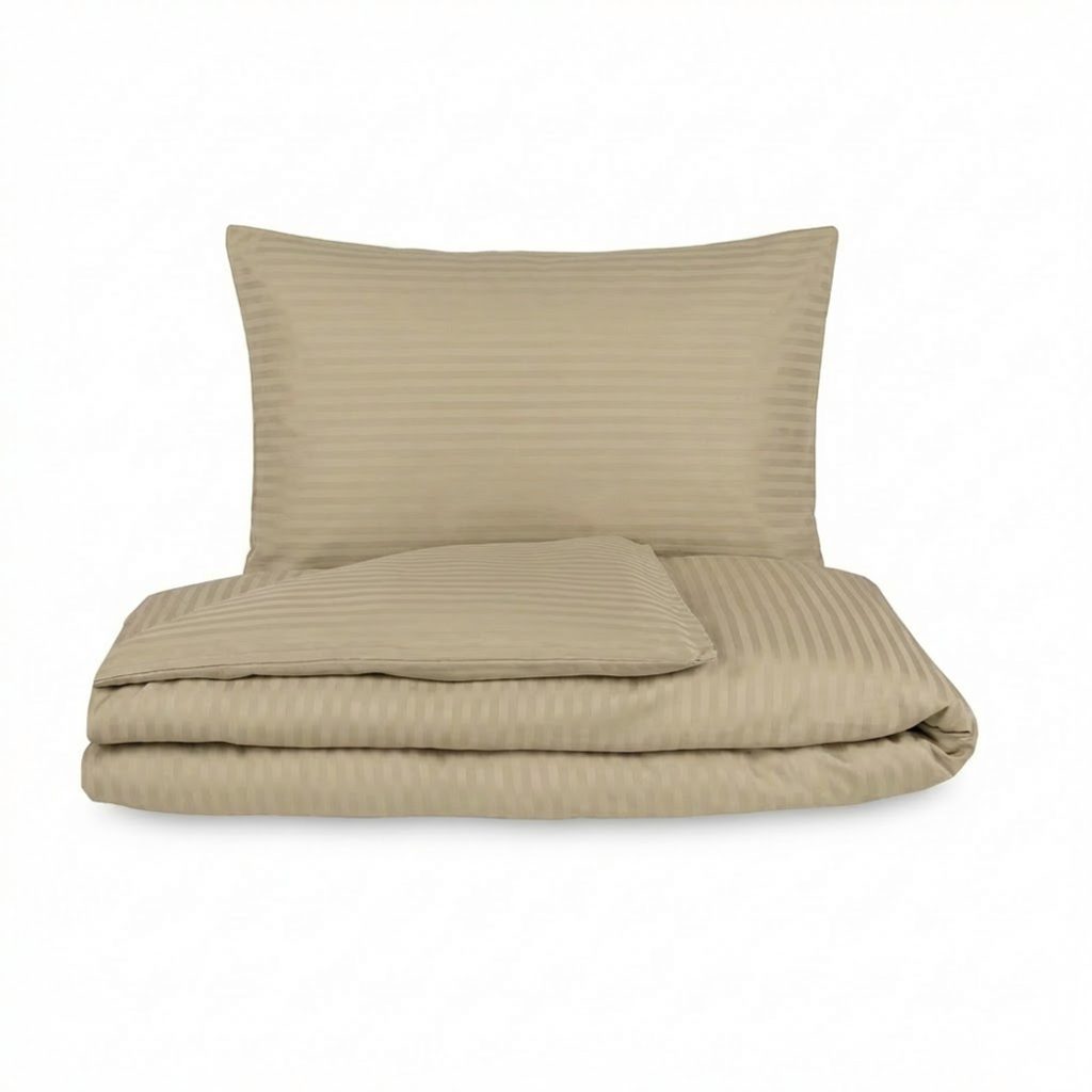 Saténové povlečení s proužkem 1+2, 240x200, 70x90cm BÉŽOVÉ