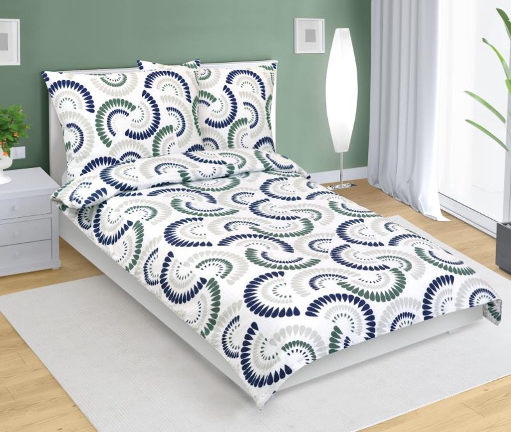 Povlečení krepové Tyrkysová,Šedá,Bílá 80/561