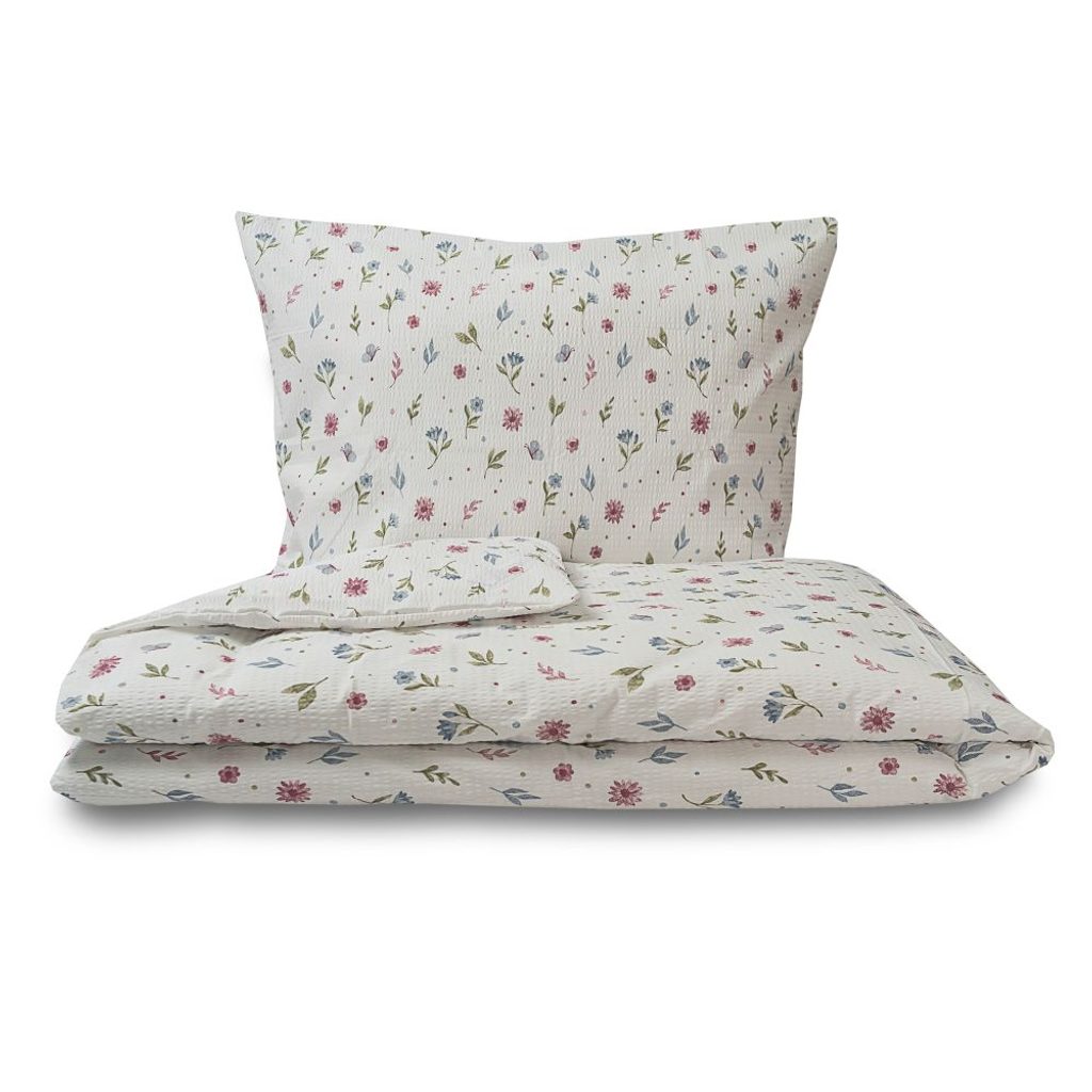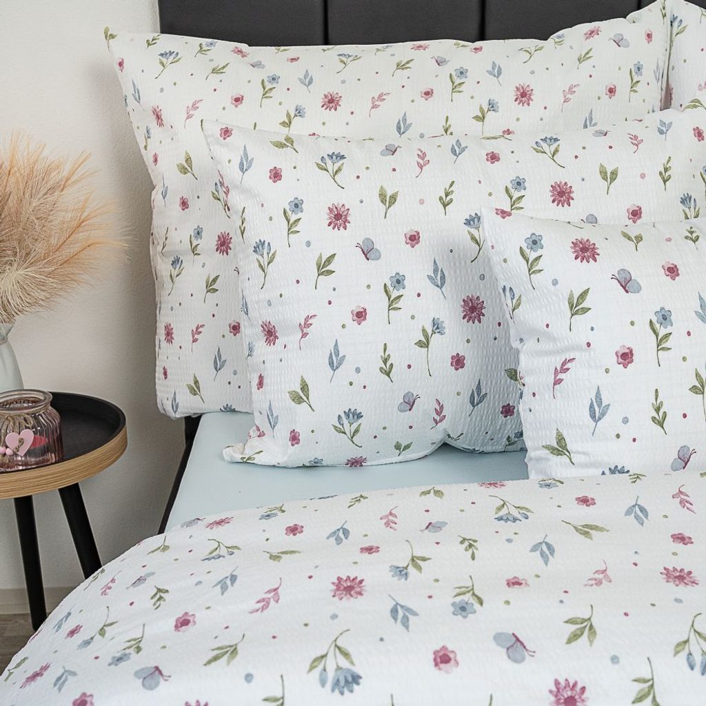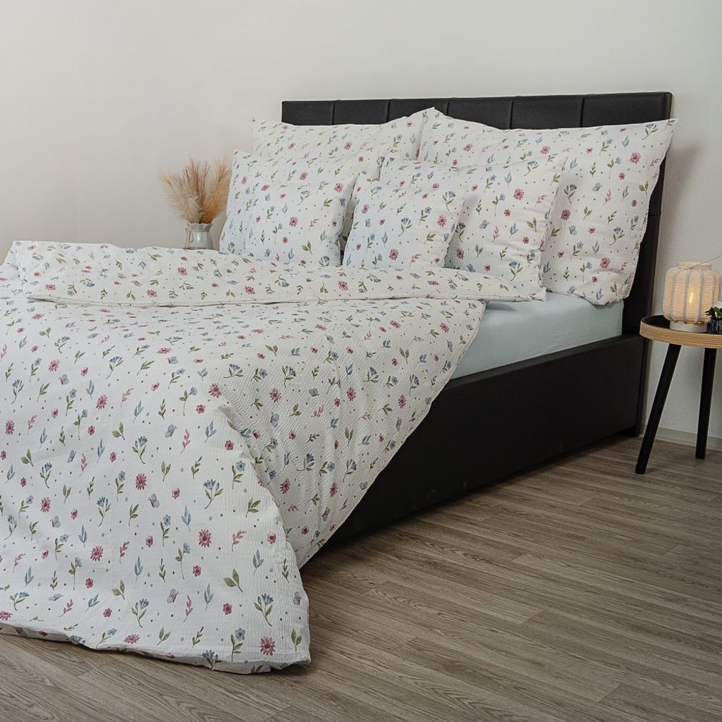 Krepové povlečení je vyrobeno ze 100% bavlny. Krepové povlečení se nemusí žehlit a je zde velmi snadná údržba. Vneste do své ložnice harmonii a svěžest přírody s povlečením Letní louka. Jemný motiv rozkvetlé louky s pestrými květy, jemnou zelení a motýlky přináší do interiéru pocit klidu a radosti.