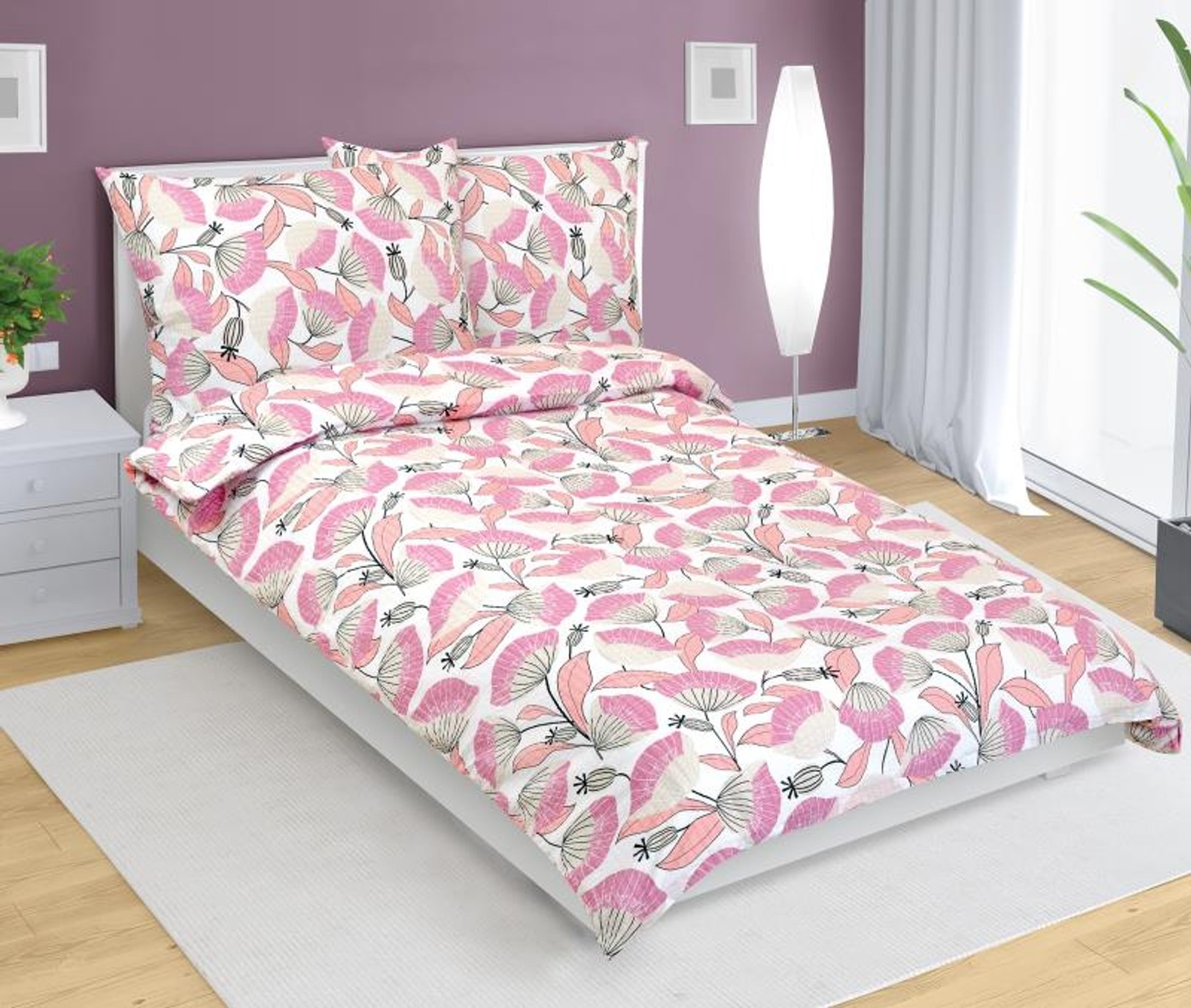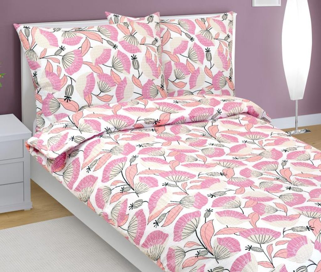 Povlečení krepové Bílá,Růžová 80/225 140x200, 70x90 cm